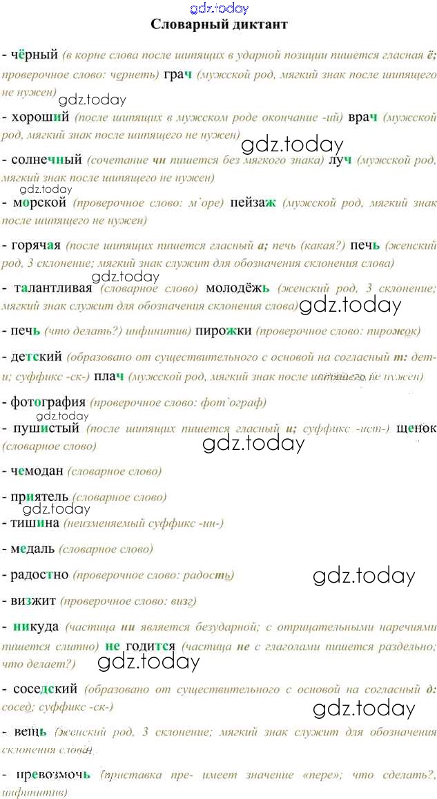 На страницах сайта gdz.today вы найдете учебный и вспомогательный материал, направленный на улучшения знаний школьной программы. ГДЗ - онлайн мир знаний Словарный диктант Часть 2 (решение) с.24 Учебнику по Русскому языку для 6 класса Быстрова, Кибирева Русское слово Инновационная школа 2016