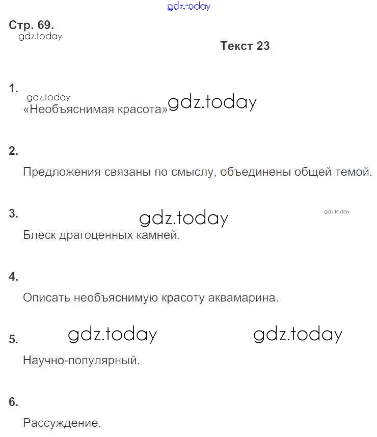 На страницах сайта gdz.today вы найдете учебный и вспомогательный материал, направленный на улучшения знаний школьной программы. ГДЗ - онлайн мир знаний Страницы (решение) 69 Комплексному анализу текста (Рабочей тетради) по Русскому языку для 6 класса Малюшкин Сфера 2014
