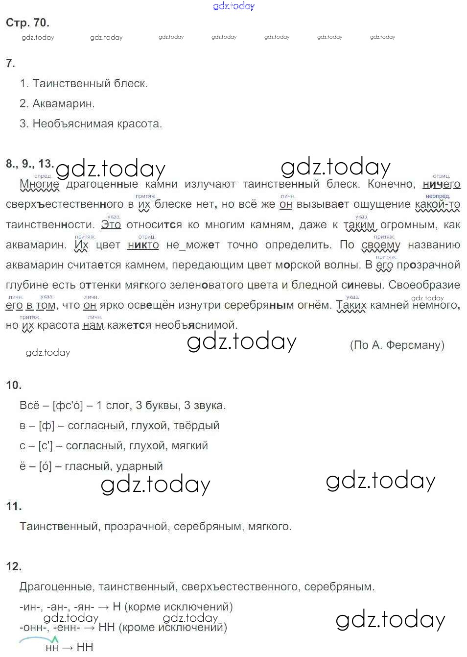 Ответы к Страницы (решение) 70 Комплексному анализу текста (Рабочей тетради) по Русскому языку для 6 класса Малюшкин Сфера 2014