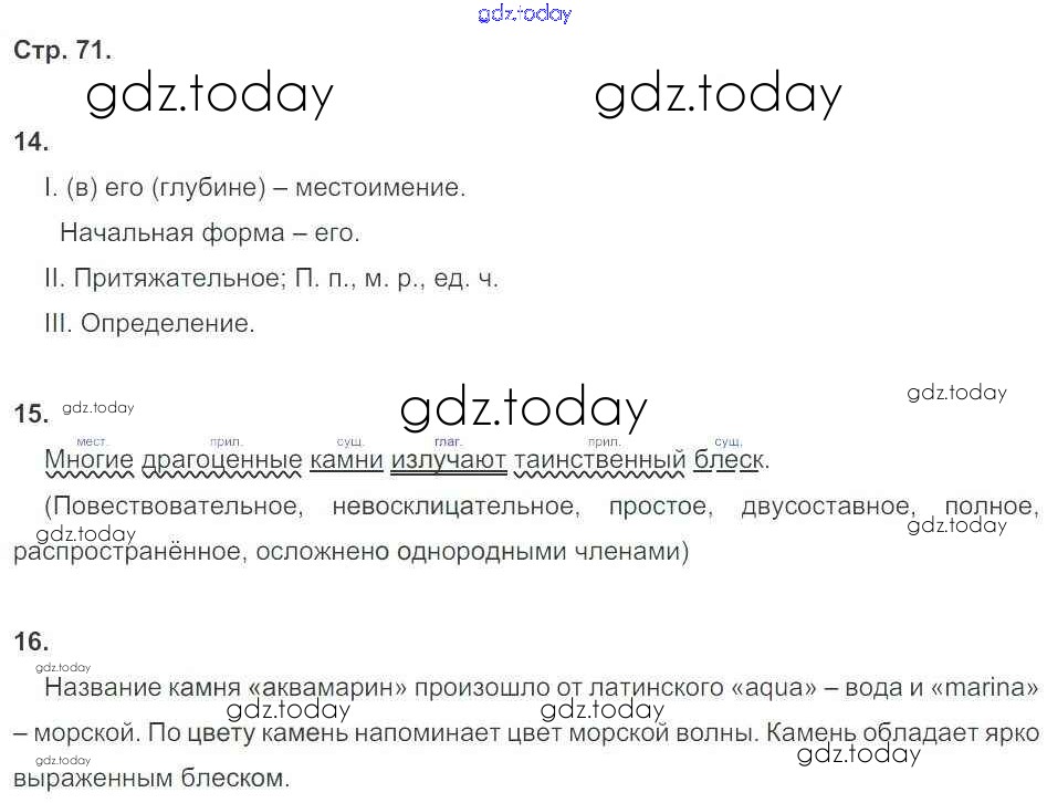 Ответы к Страницы (решение) 71 Комплексному анализу текста (Рабочей тетради) по Русскому языку для 6 класса Малюшкин Сфера 2014