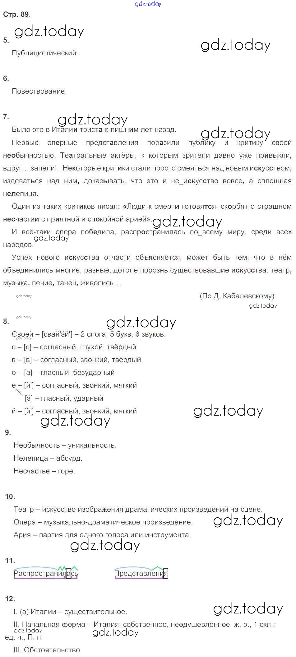 Ответы к Страницы (решение) 89 Комплексному анализу текста (Рабочей тетради) по Русскому языку для 6 класса Малюшкин Сфера 2014