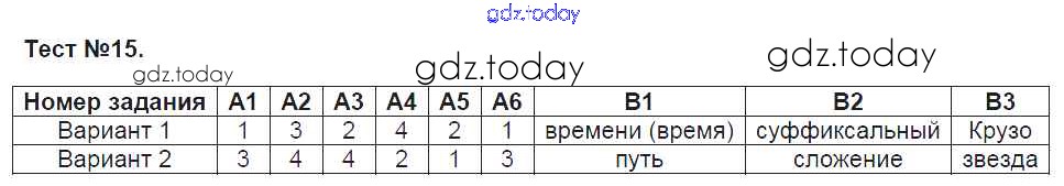 Ответы к Решение к тестам Тест-15 Контрольно-измерительным материалам (КИМ) по Русскому языку для 6 класса Егорова ВАКО 2017