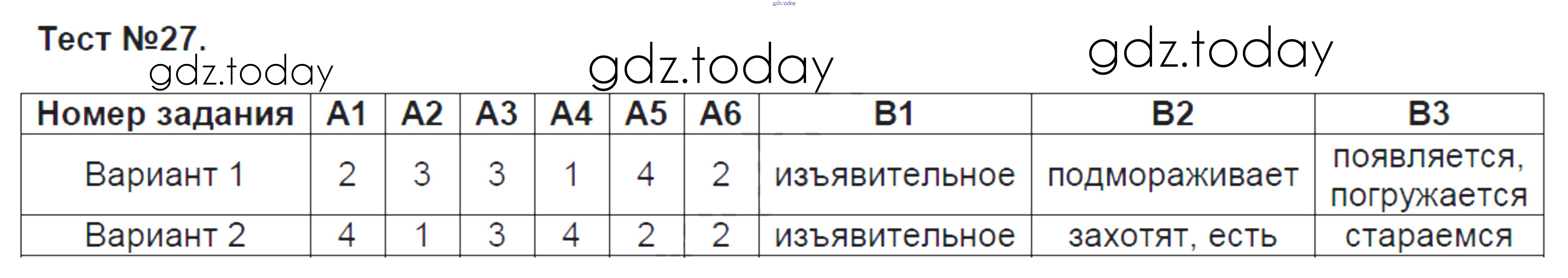 На страницах сайта gdz.today вы найдете учебный и вспомогательный материал, направленный на улучшения знаний школьной программы. ГДЗ - онлайн мир знаний Решение к тестам Тест-27 Контрольно-измерительным материалам (КИМ) по Русскому языку для 6 класса Егорова ВАКО 2017