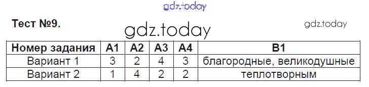 Ответы к Решение к тестам Тест-9 Контрольно-измерительным материалам (КИМ) по Русскому языку для 6 класса Егорова ВАКО 2017