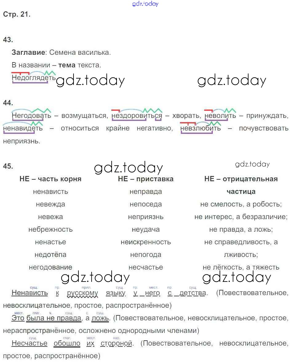 Ответы к Страницы (решение) 21 Рабочей тетради по Русскому языку для 6 класса Ларионова Дрофа Вертикаль 2014