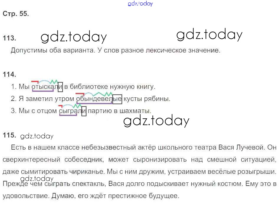 На страницах сайта gdz.today вы найдете учебный и вспомогательный материал, направленный на улучшения знаний школьной программы. ГДЗ - онлайн мир знаний Страницы (решение) 55 Рабочей тетради по Русскому языку для 6 класса Ларионова Дрофа Вертикаль 2014