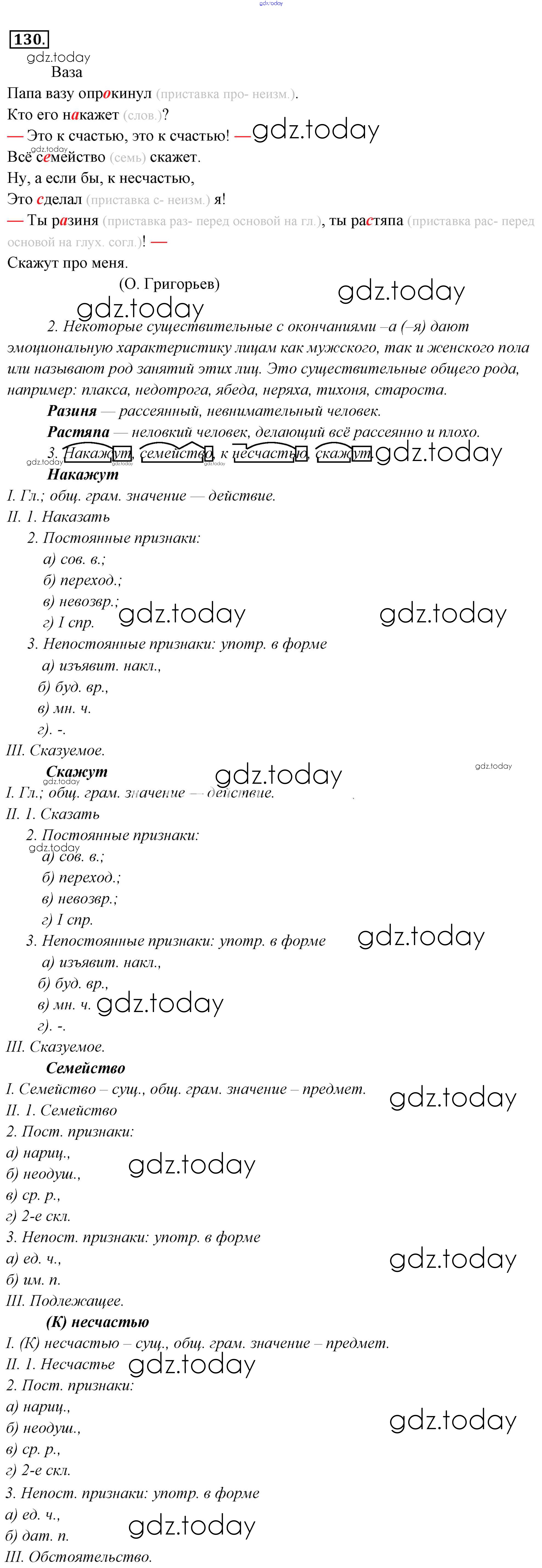 На страницах сайта gdz.today вы найдете учебный и вспомогательный материал, направленный на улучшения знаний школьной программы. ГДЗ - онлайн мир знаний Решение к упражнениям 130 Учебнику по Русскому языку для 6 класса Львова, Львов Мнемозина 2013