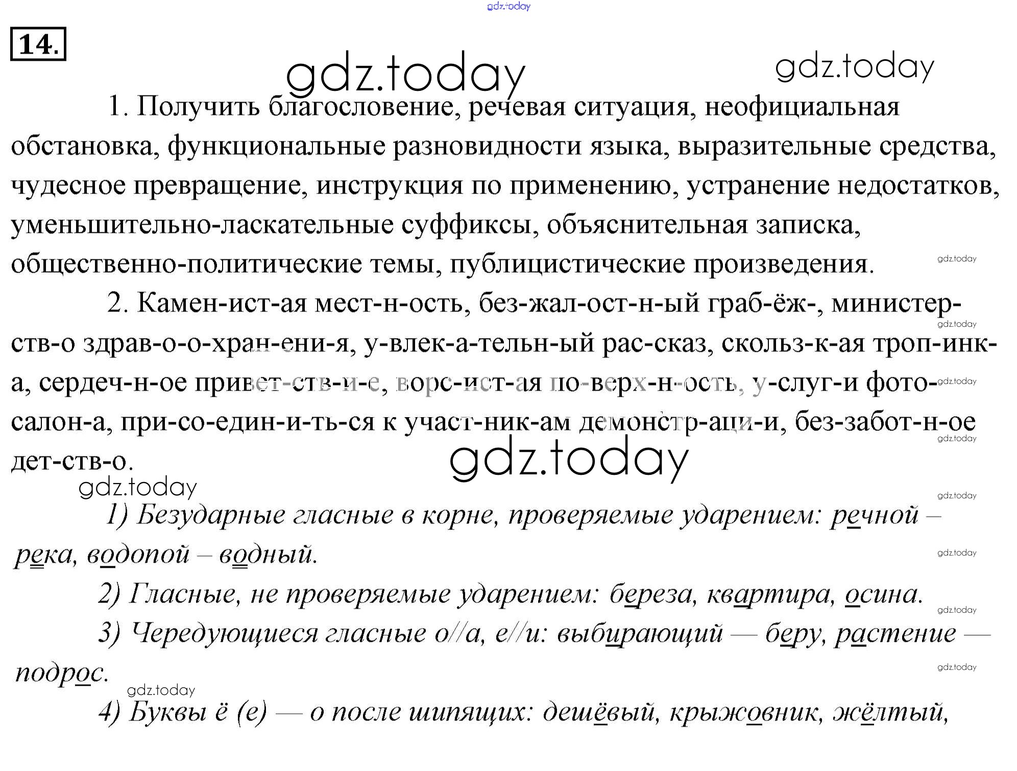 На страницах сайта gdz.today вы найдете учебный и вспомогательный материал, направленный на улучшения знаний школьной программы. ГДЗ - онлайн мир знаний Решение к упражнениям 14 Учебнику по Русскому языку для 6 класса Львова, Львов Мнемозина 2013
