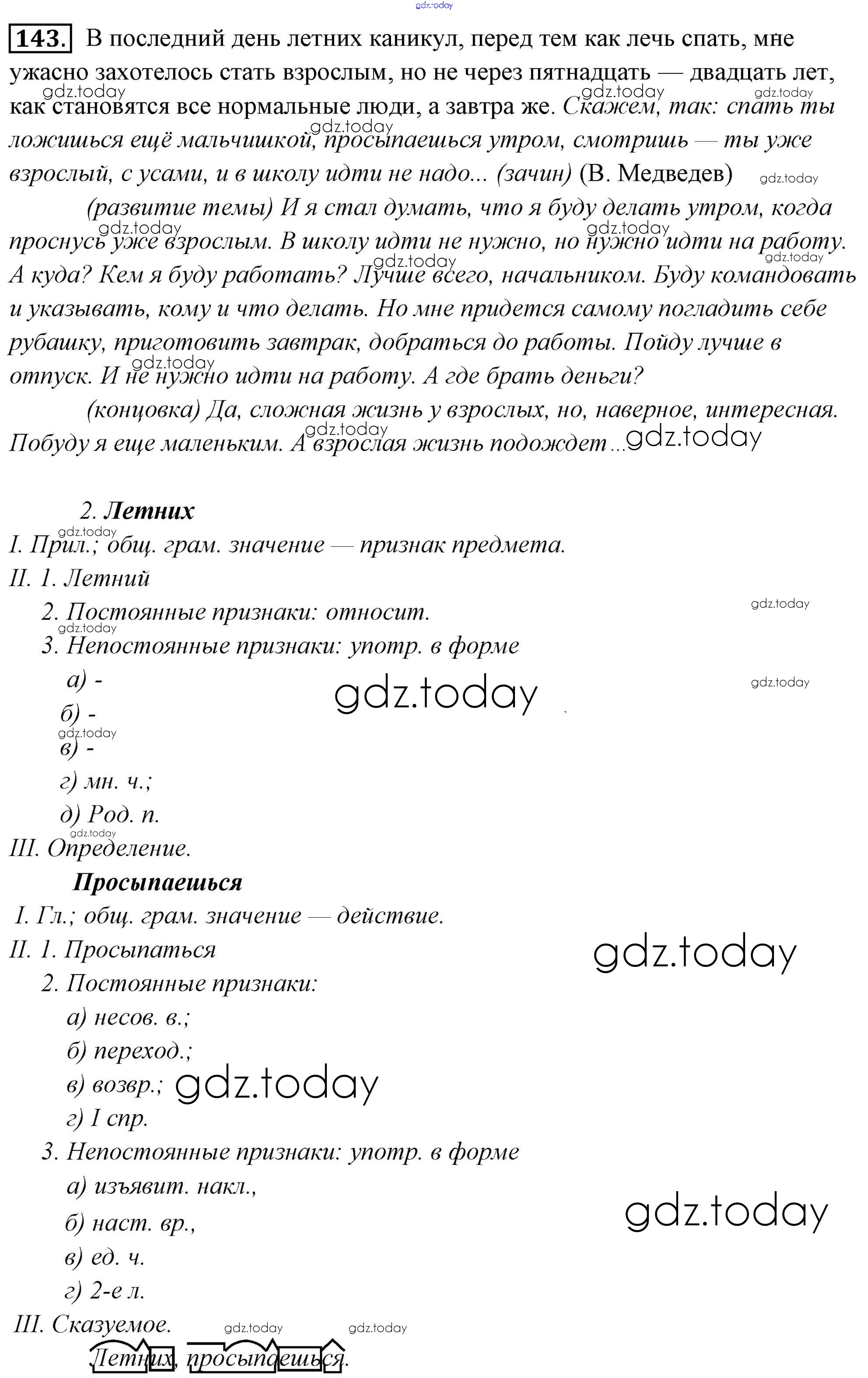 На страницах сайта gdz.today вы найдете учебный и вспомогательный материал, направленный на улучшения знаний школьной программы. ГДЗ - онлайн мир знаний Решение к упражнениям 143 Учебнику по Русскому языку для 6 класса Львова, Львов Мнемозина 2013