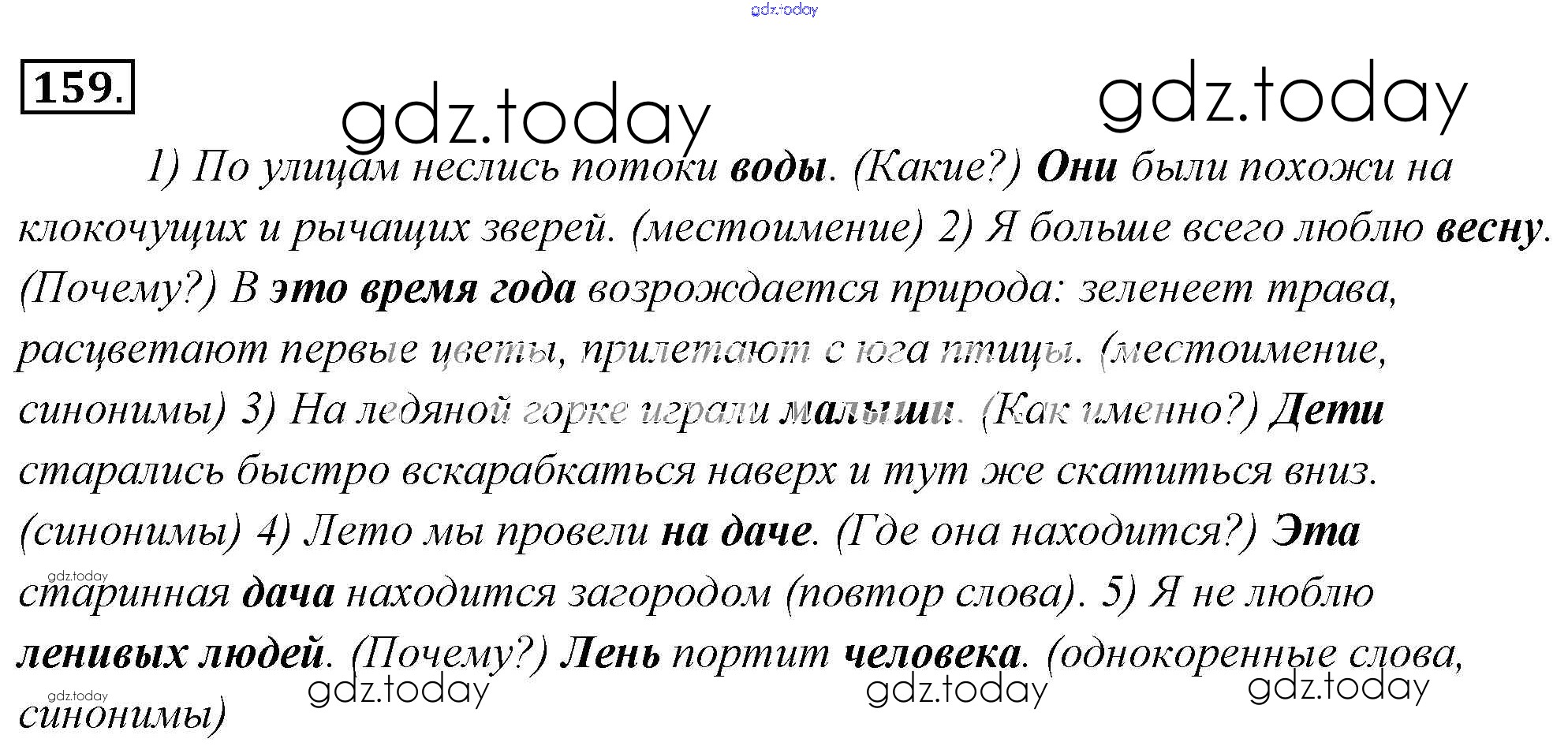 На страницах сайта gdz.today вы найдете учебный и вспомогательный материал, направленный на улучшения знаний школьной программы. ГДЗ - онлайн мир знаний Решение к упражнениям 159 Учебнику по Русскому языку для 6 класса Львова, Львов Мнемозина 2013