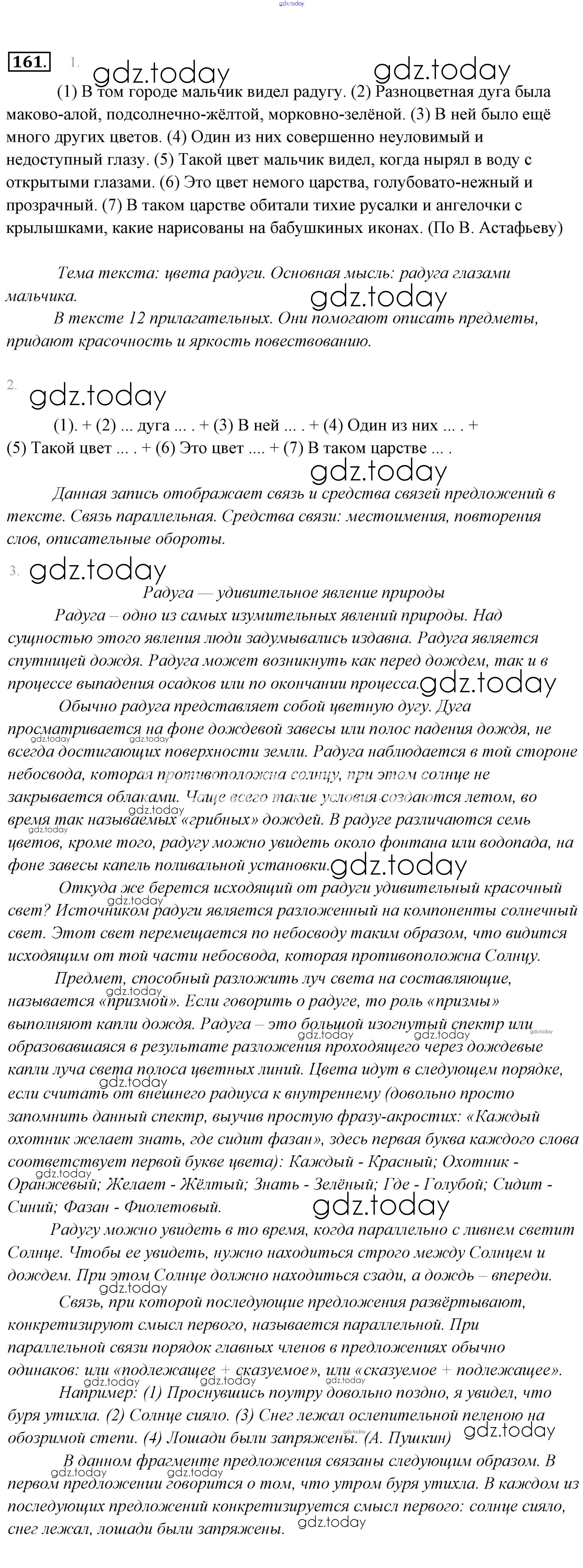 На страницах сайта gdz.today вы найдете учебный и вспомогательный материал, направленный на улучшения знаний школьной программы. ГДЗ - онлайн мир знаний Решение к упражнениям 161 Учебнику по Русскому языку для 6 класса Львова, Львов Мнемозина 2013
