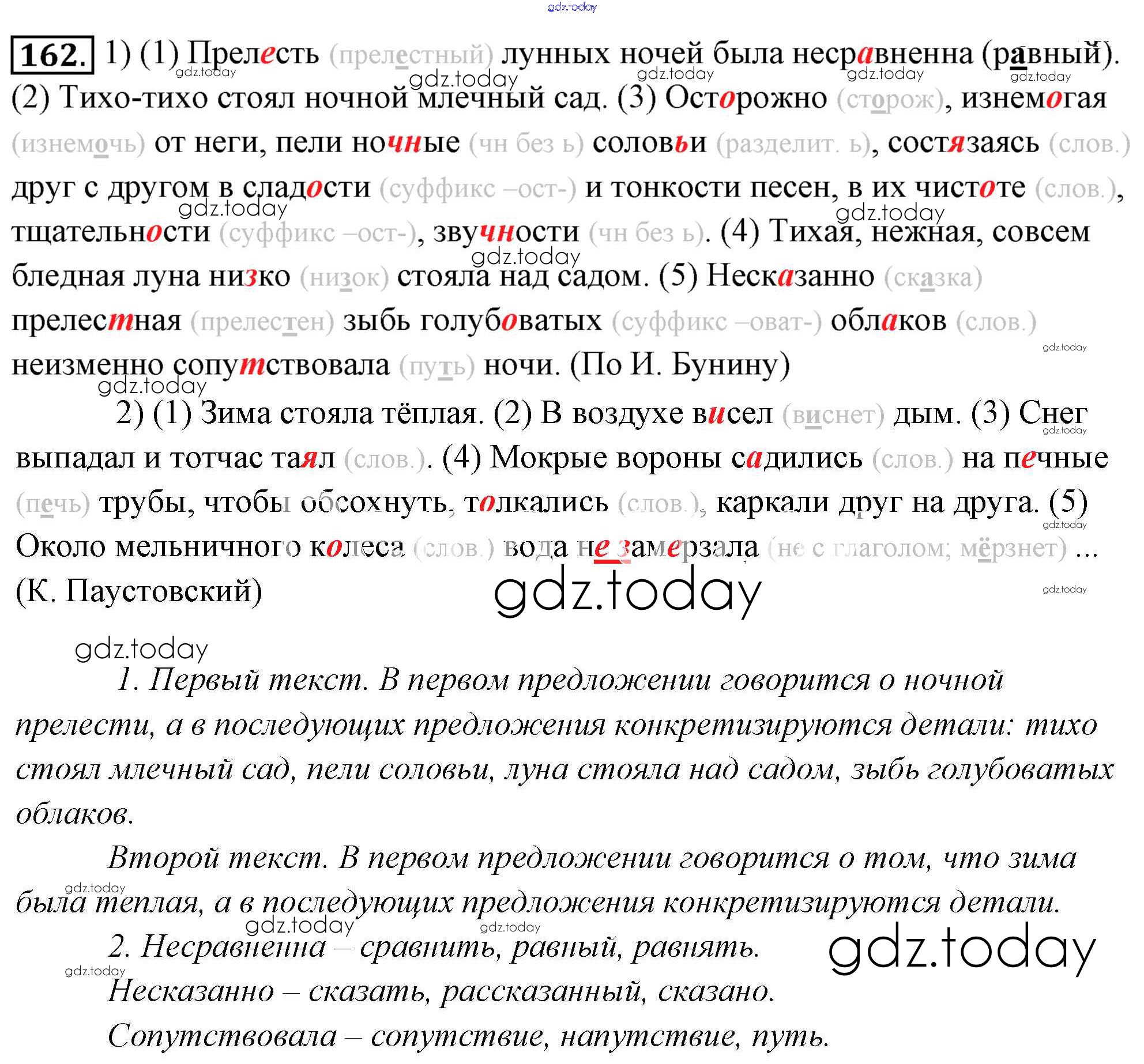На страницах сайта gdz.today вы найдете учебный и вспомогательный материал, направленный на улучшения знаний школьной программы. ГДЗ - онлайн мир знаний Решение к упражнениям 162 Учебнику по Русскому языку для 6 класса Львова, Львов Мнемозина 2013
