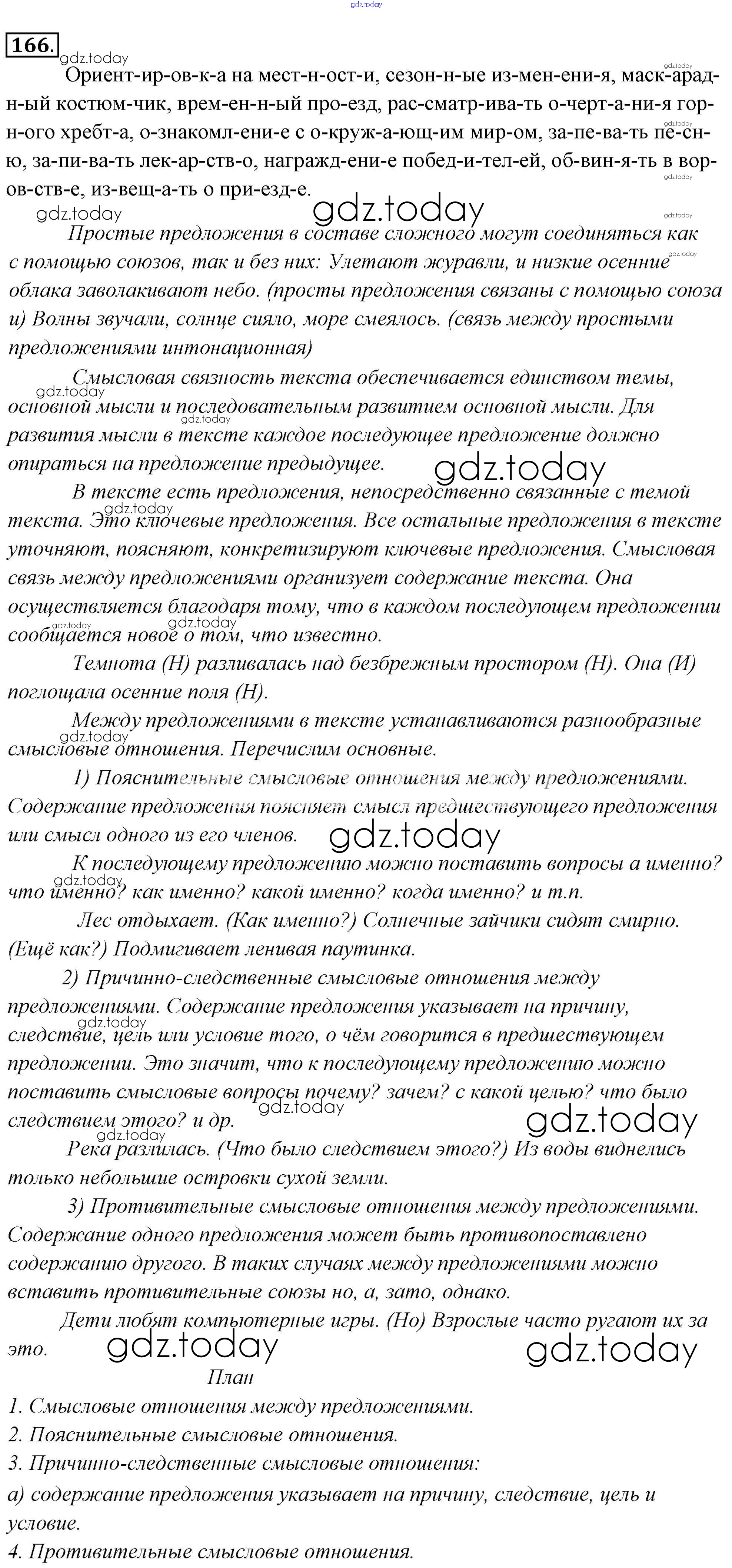 На страницах сайта gdz.today вы найдете учебный и вспомогательный материал, направленный на улучшения знаний школьной программы. ГДЗ - онлайн мир знаний Решение к упражнениям 166 Учебнику по Русскому языку для 6 класса Львова, Львов Мнемозина 2013