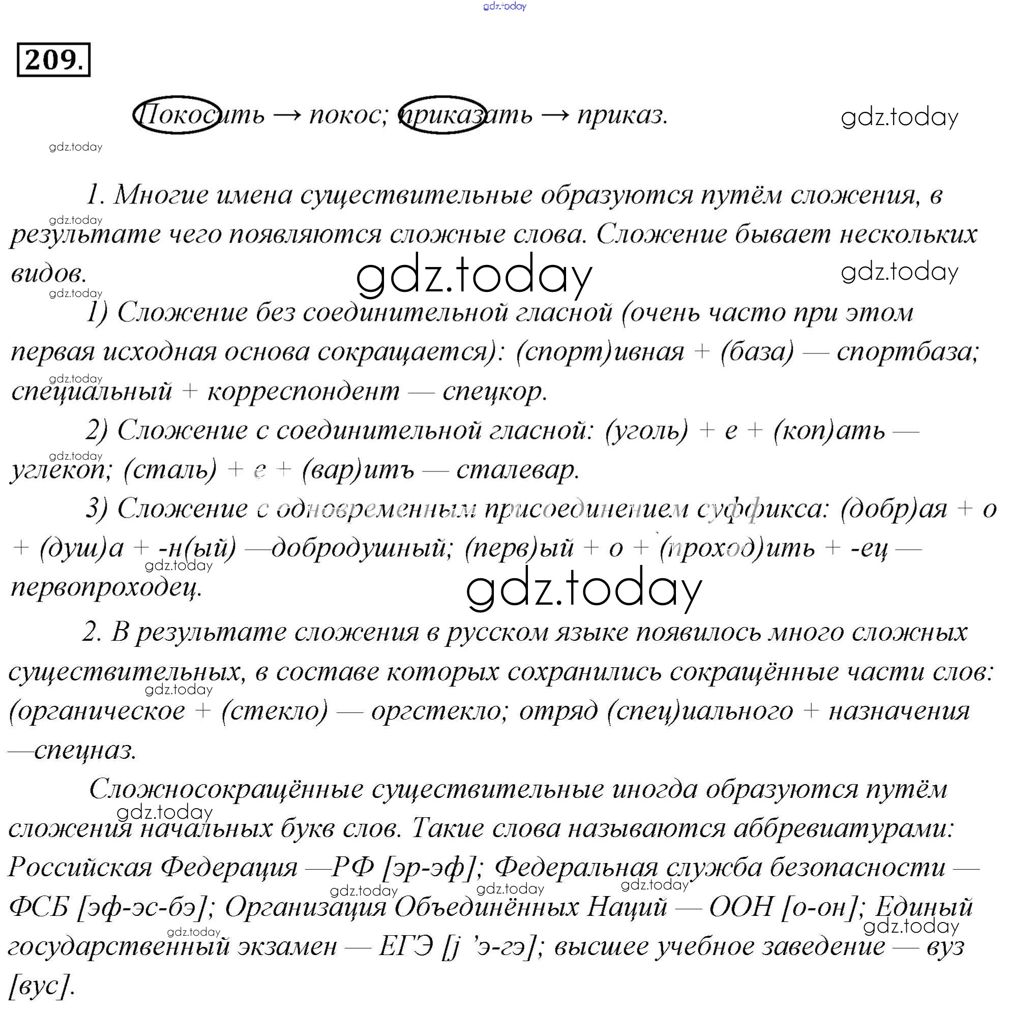 На страницах сайта gdz.today вы найдете учебный и вспомогательный материал, направленный на улучшения знаний школьной программы. ГДЗ - онлайн мир знаний Решение к упражнениям 209 Учебнику по Русскому языку для 6 класса Львова, Львов Мнемозина 2013