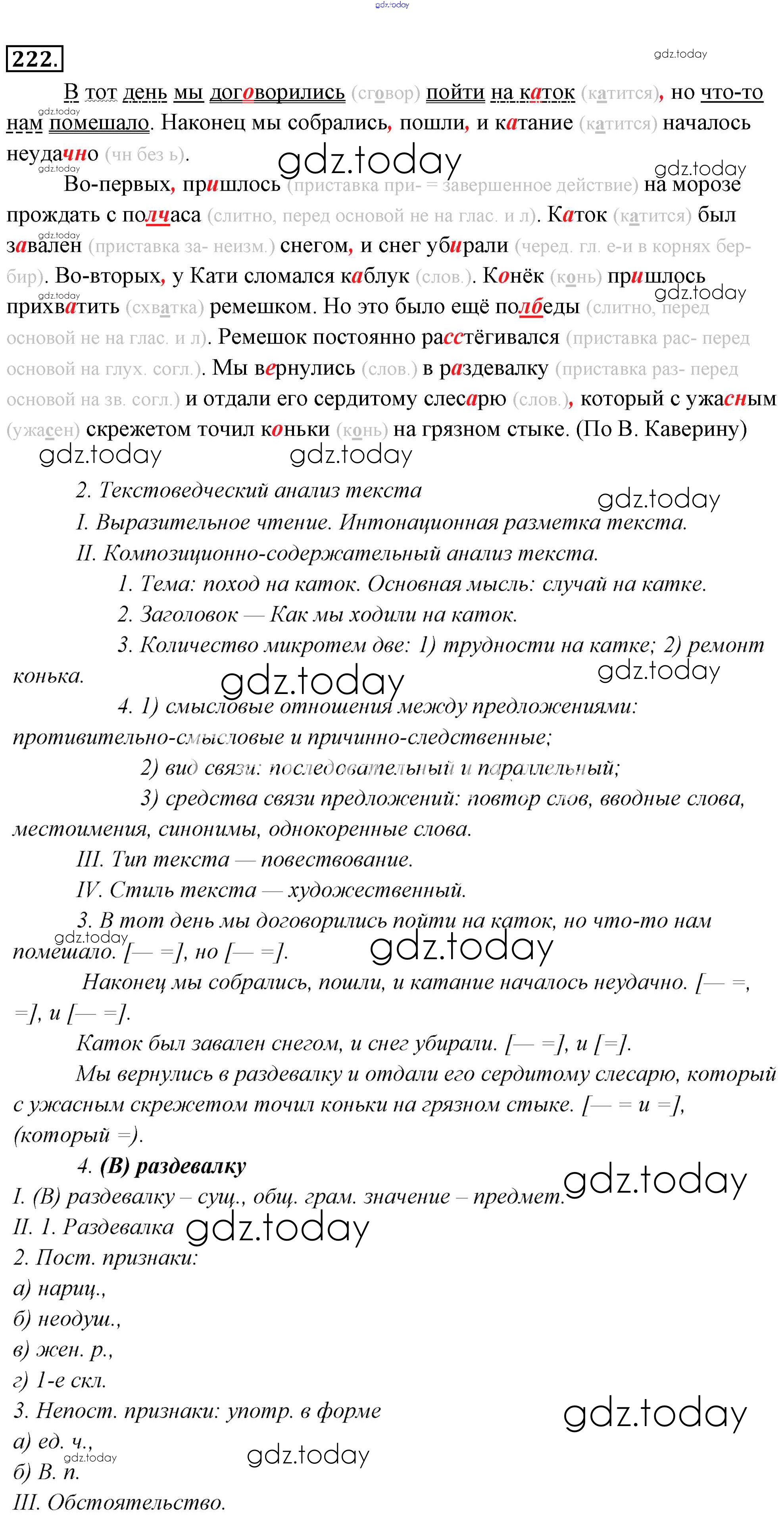 На страницах сайта gdz.today вы найдете учебный и вспомогательный материал, направленный на улучшения знаний школьной программы. ГДЗ - онлайн мир знаний Решение к упражнениям 222 Учебнику по Русскому языку для 6 класса Львова, Львов Мнемозина 2013