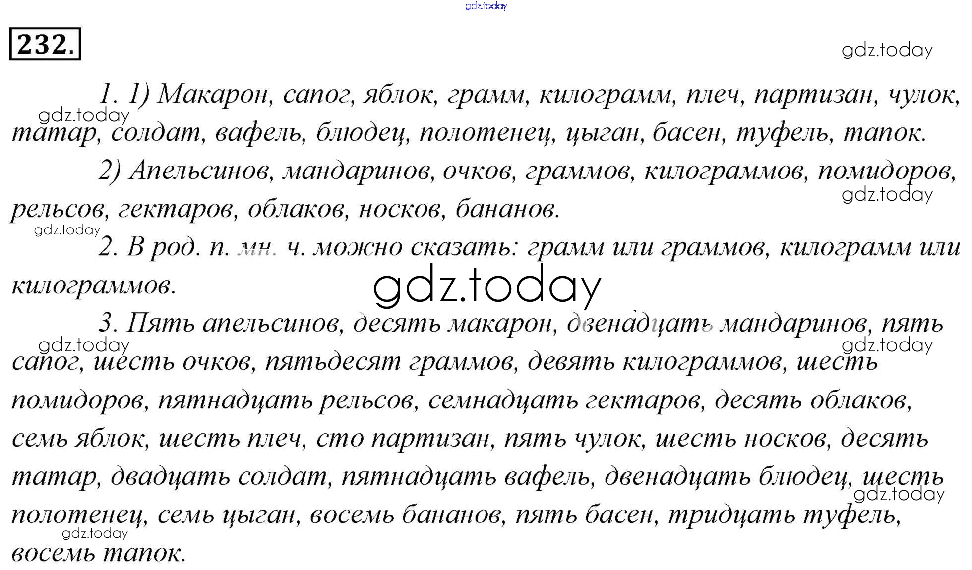 На страницах сайта gdz.today вы найдете учебный и вспомогательный материал, направленный на улучшения знаний школьной программы. ГДЗ - онлайн мир знаний Решение к упражнениям 232 Учебнику по Русскому языку для 6 класса Львова, Львов Мнемозина 2013
