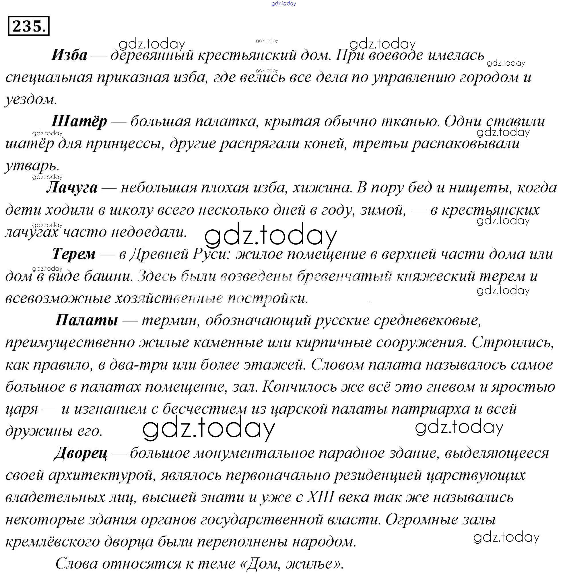 На страницах сайта gdz.today вы найдете учебный и вспомогательный материал, направленный на улучшения знаний школьной программы. ГДЗ - онлайн мир знаний Решение к упражнениям 235 Учебнику по Русскому языку для 6 класса Львова, Львов Мнемозина 2013