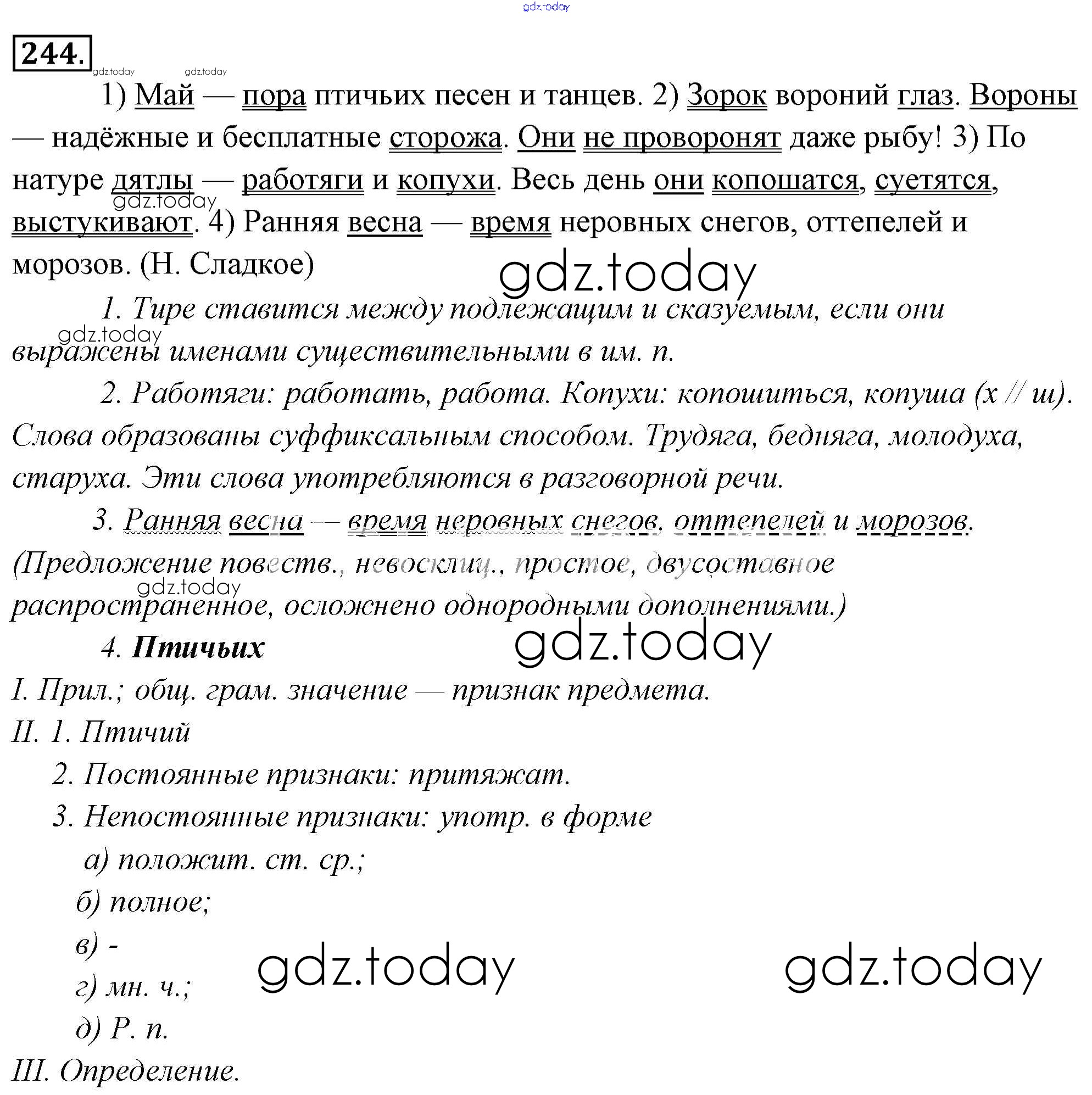 На страницах сайта gdz.today вы найдете учебный и вспомогательный материал, направленный на улучшения знаний школьной программы. ГДЗ - онлайн мир знаний Решение к упражнениям 244 Учебнику по Русскому языку для 6 класса Львова, Львов Мнемозина 2013