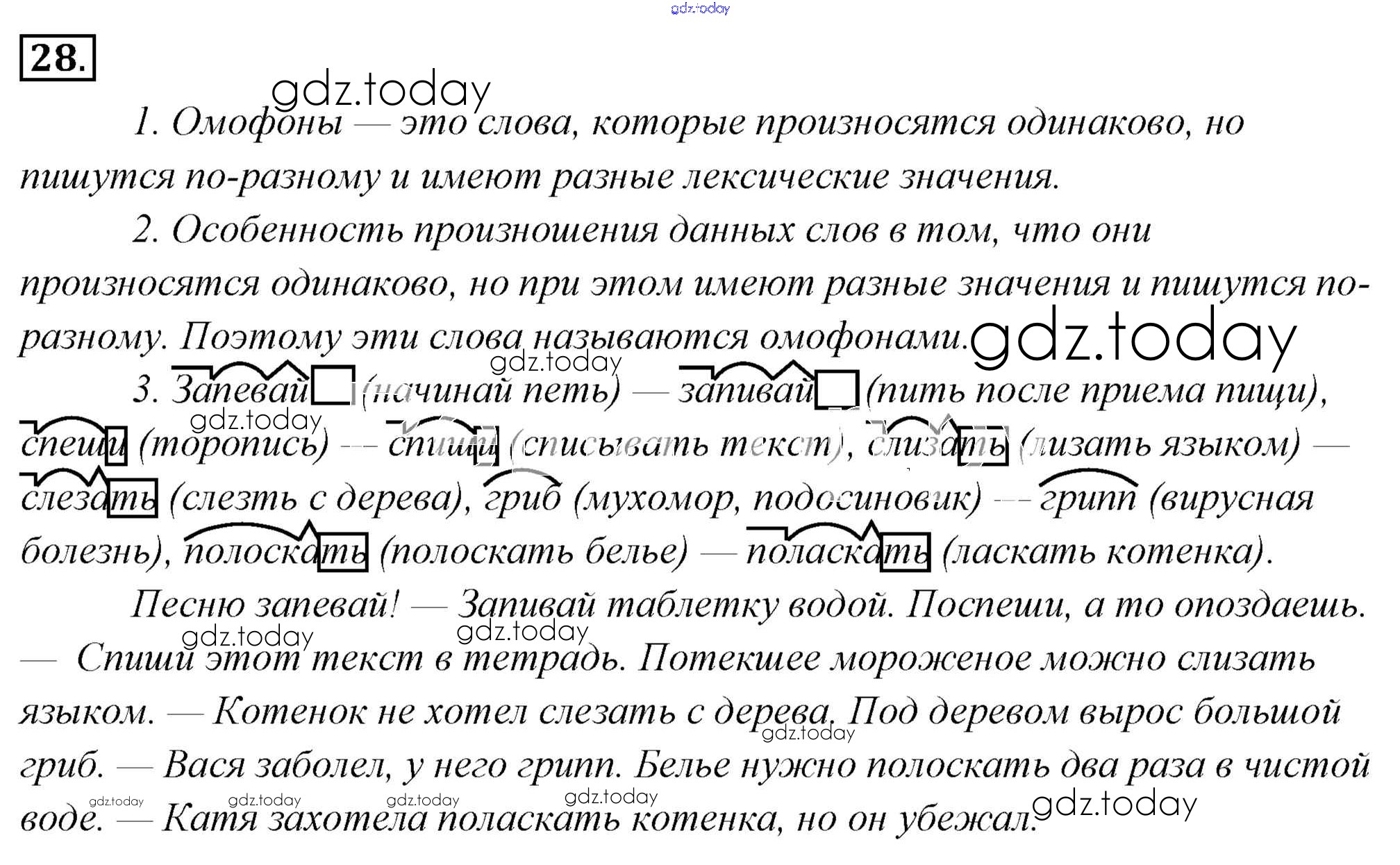 На страницах сайта gdz.today вы найдете учебный и вспомогательный материал, направленный на улучшения знаний школьной программы. ГДЗ - онлайн мир знаний Решение к упражнениям 28 Учебнику по Русскому языку для 6 класса Львова, Львов Мнемозина 2013