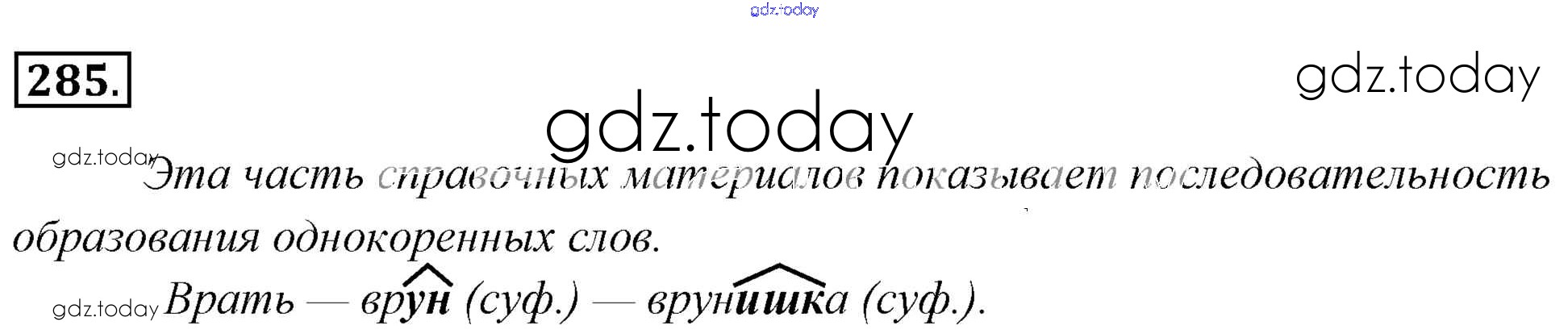 На страницах сайта gdz.today вы найдете учебный и вспомогательный материал, направленный на улучшения знаний школьной программы. ГДЗ - онлайн мир знаний Решение к упражнениям 285 Учебнику по Русскому языку для 6 класса Львова, Львов Мнемозина 2013