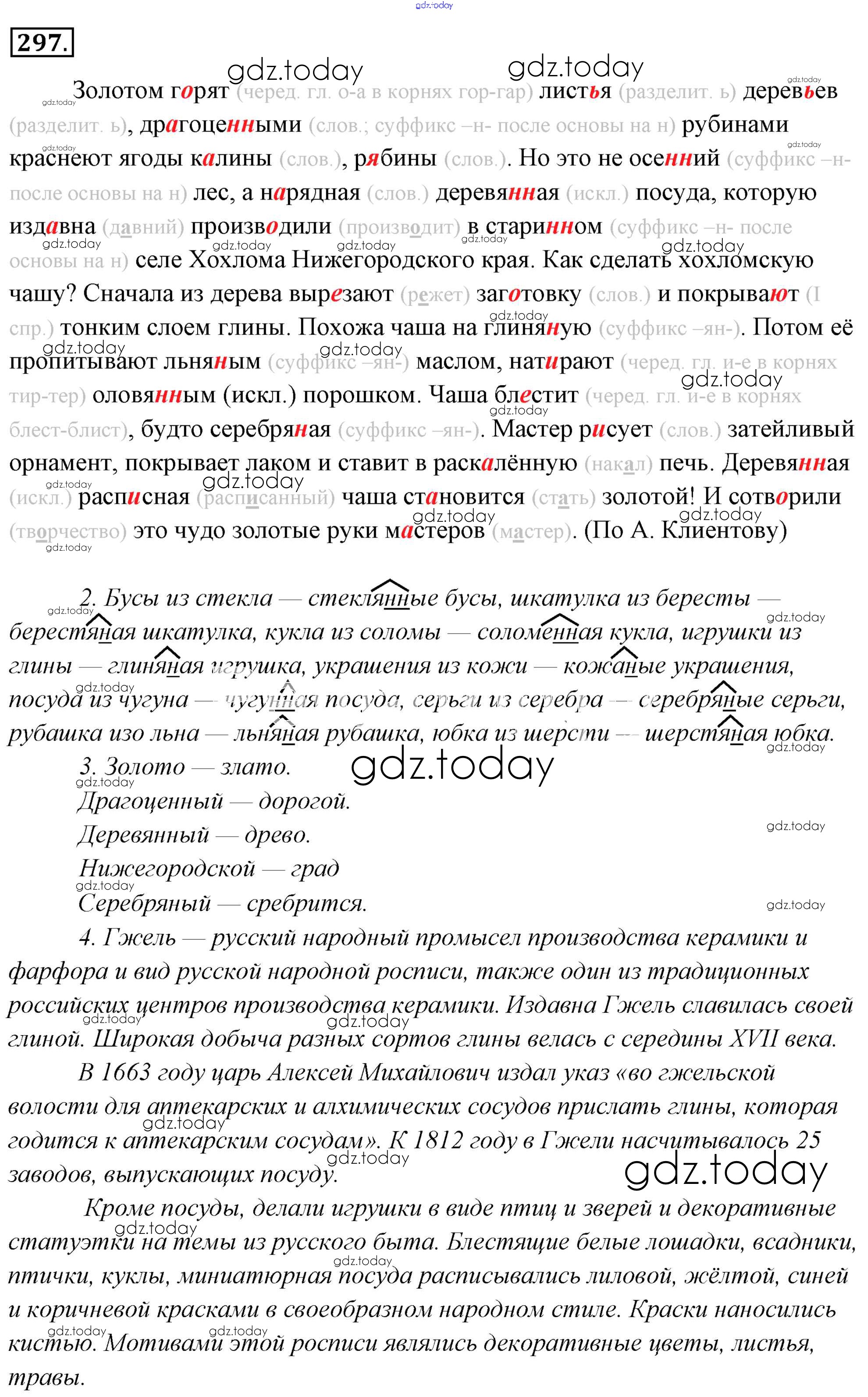 На страницах сайта gdz.today вы найдете учебный и вспомогательный материал, направленный на улучшения знаний школьной программы. ГДЗ - онлайн мир знаний Решение к упражнениям 297 Учебнику по Русскому языку для 6 класса Львова, Львов Мнемозина 2013