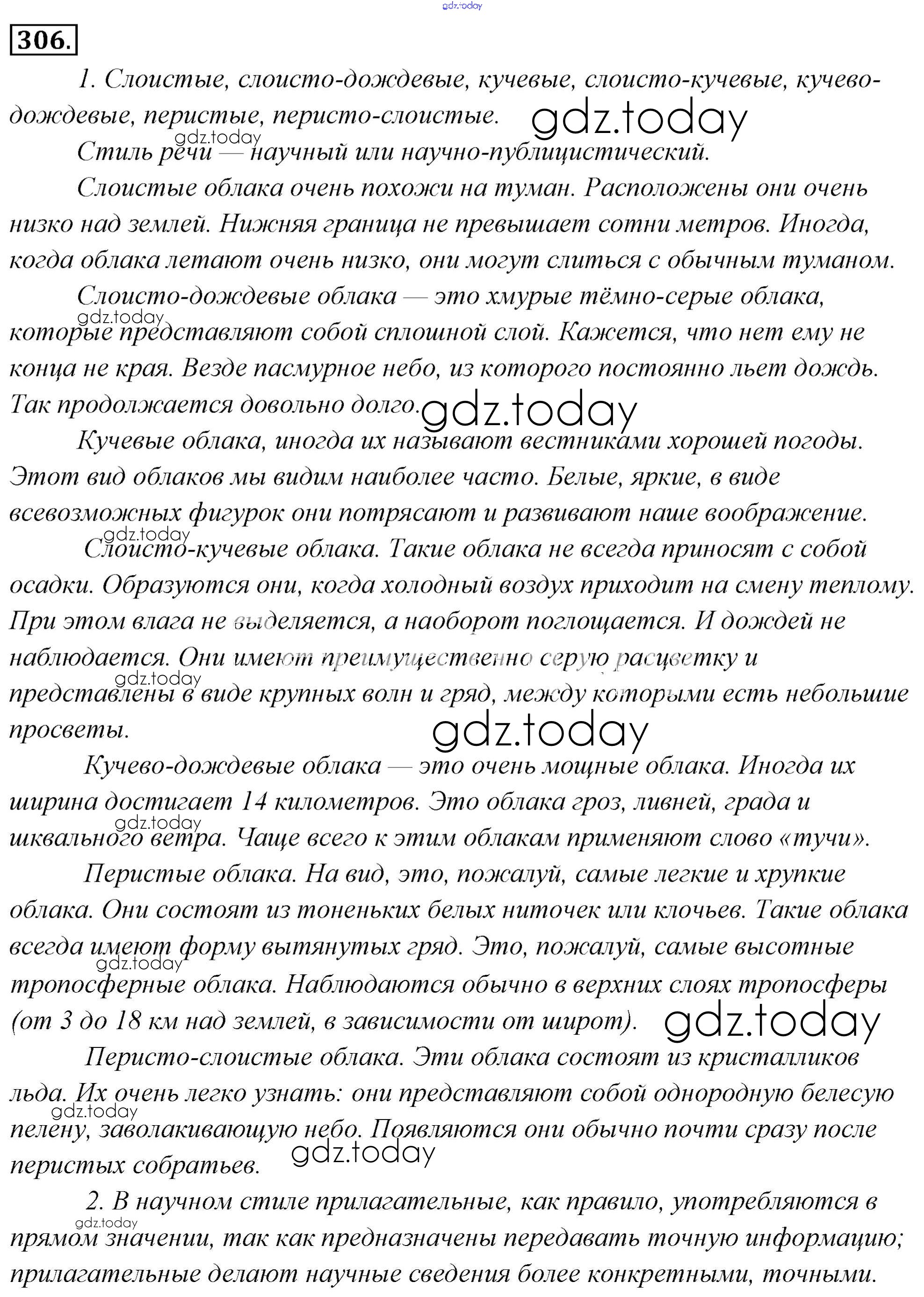 На страницах сайта gdz.today вы найдете учебный и вспомогательный материал, направленный на улучшения знаний школьной программы. ГДЗ - онлайн мир знаний Решение к упражнениям 306 Учебнику по Русскому языку для 6 класса Львова, Львов Мнемозина 2013