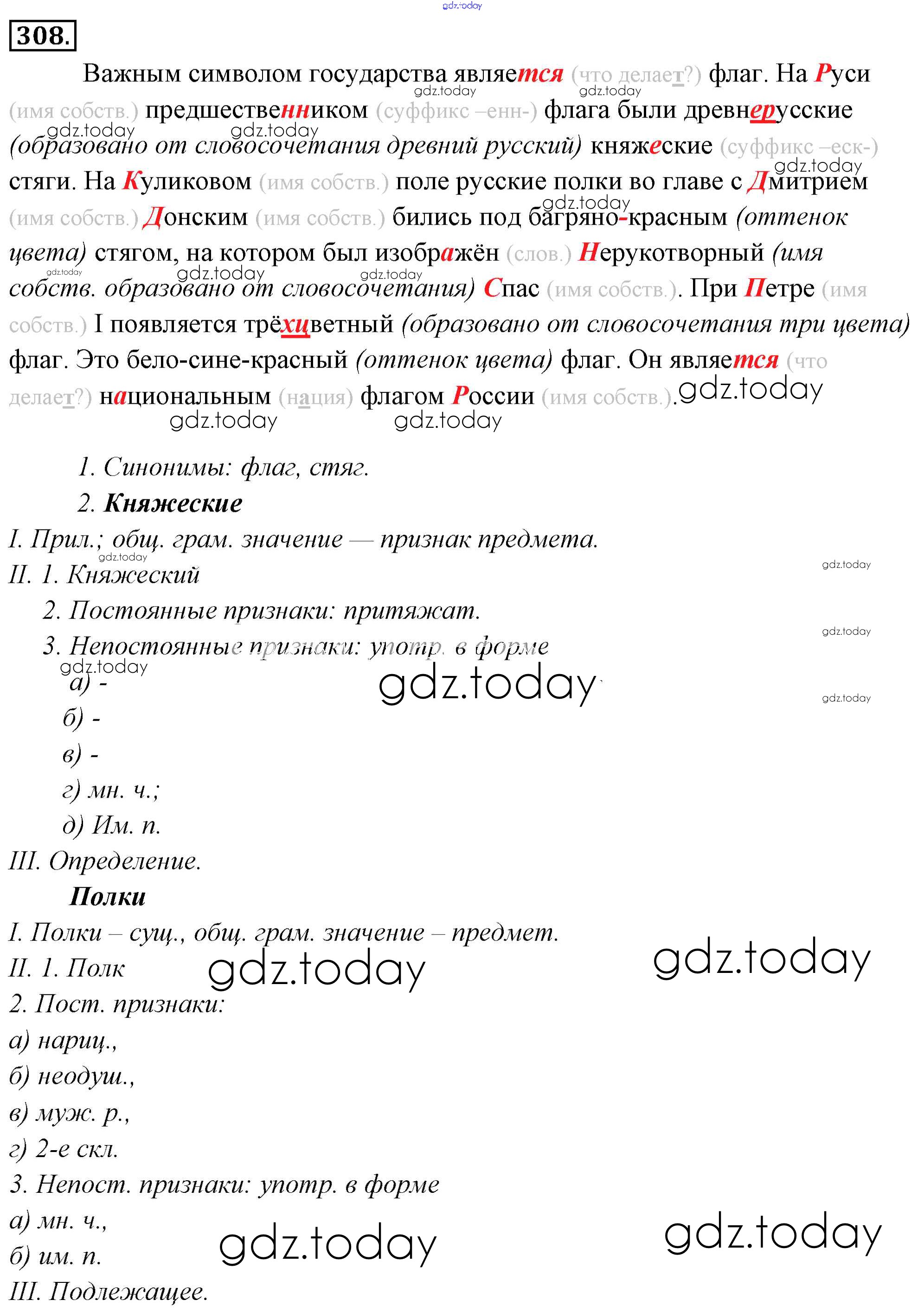 На страницах сайта gdz.today вы найдете учебный и вспомогательный материал, направленный на улучшения знаний школьной программы. ГДЗ - онлайн мир знаний Решение к упражнениям 308 Учебнику по Русскому языку для 6 класса Львова, Львов Мнемозина 2013