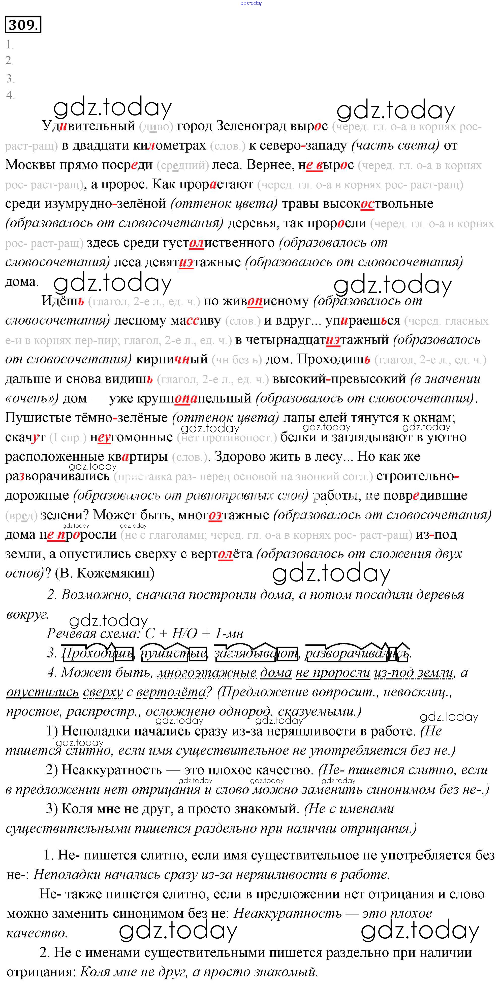 На страницах сайта gdz.today вы найдете учебный и вспомогательный материал, направленный на улучшения знаний школьной программы. ГДЗ - онлайн мир знаний Решение к упражнениям 309 Учебнику по Русскому языку для 6 класса Львова, Львов Мнемозина 2013