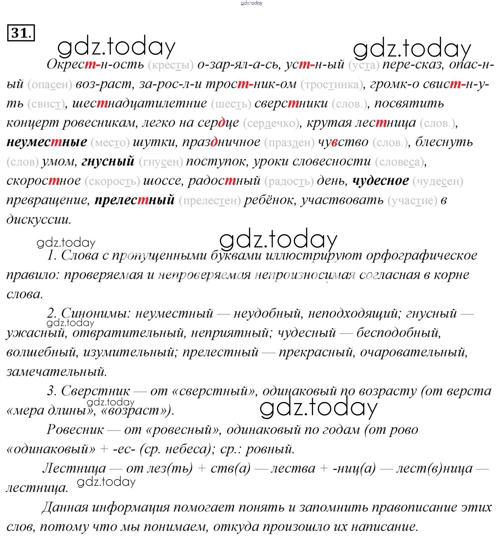 На страницах сайта gdz.today вы найдете учебный и вспомогательный материал, направленный на улучшения знаний школьной программы. ГДЗ - онлайн мир знаний Решение к упражнениям 31 Учебнику по Русскому языку для 6 класса Львова, Львов Мнемозина 2013