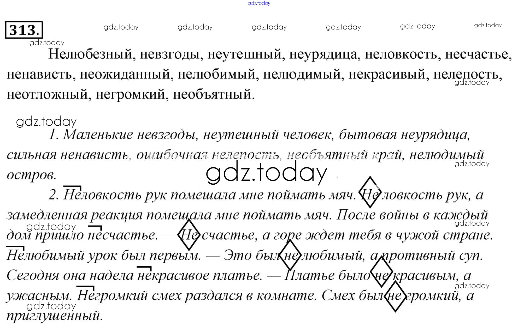 На страницах сайта gdz.today вы найдете учебный и вспомогательный материал, направленный на улучшения знаний школьной программы. ГДЗ - онлайн мир знаний Решение к упражнениям 313 Учебнику по Русскому языку для 6 класса Львова, Львов Мнемозина 2013