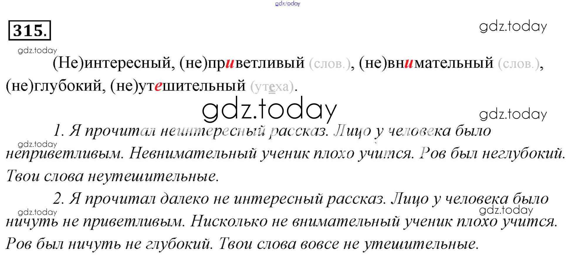 На страницах сайта gdz.today вы найдете учебный и вспомогательный материал, направленный на улучшения знаний школьной программы. ГДЗ - онлайн мир знаний Решение к упражнениям 315 Учебнику по Русскому языку для 6 класса Львова, Львов Мнемозина 2013