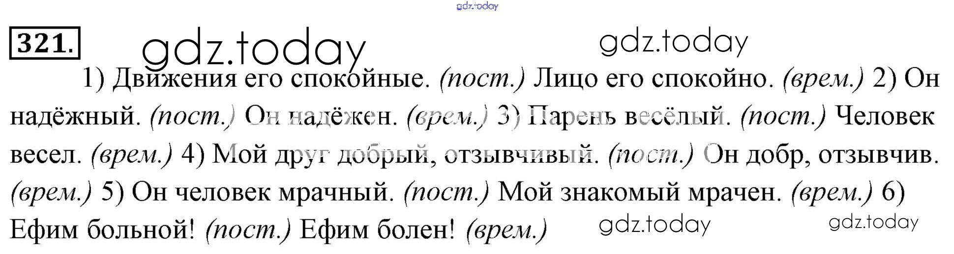 На страницах сайта gdz.today вы найдете учебный и вспомогательный материал, направленный на улучшения знаний школьной программы. ГДЗ - онлайн мир знаний Решение к упражнениям 321 Учебнику по Русскому языку для 6 класса Львова, Львов Мнемозина 2013