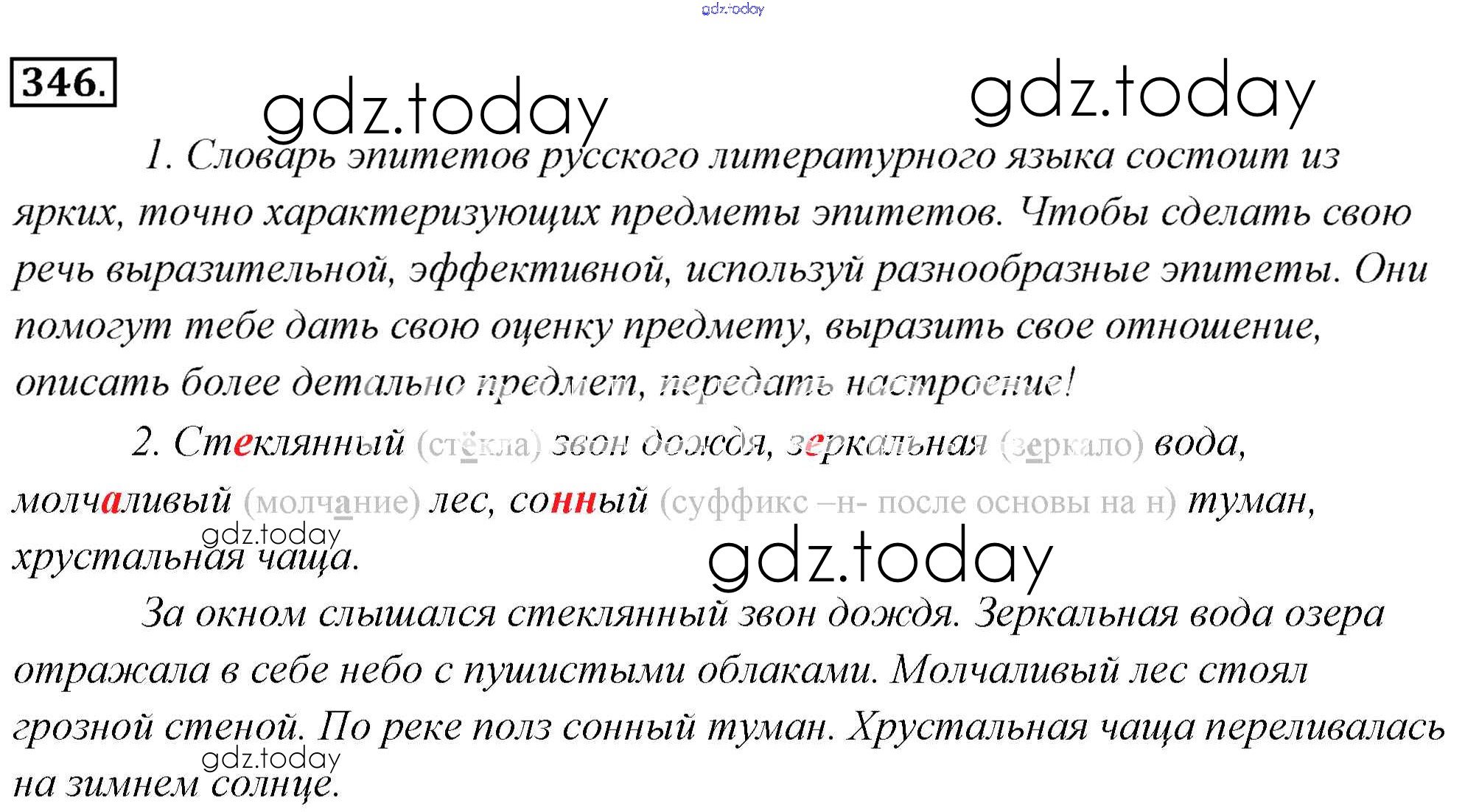 На страницах сайта gdz.today вы найдете учебный и вспомогательный материал, направленный на улучшения знаний школьной программы. ГДЗ - онлайн мир знаний Решение к упражнениям 346 Учебнику по Русскому языку для 6 класса Львова, Львов Мнемозина 2013