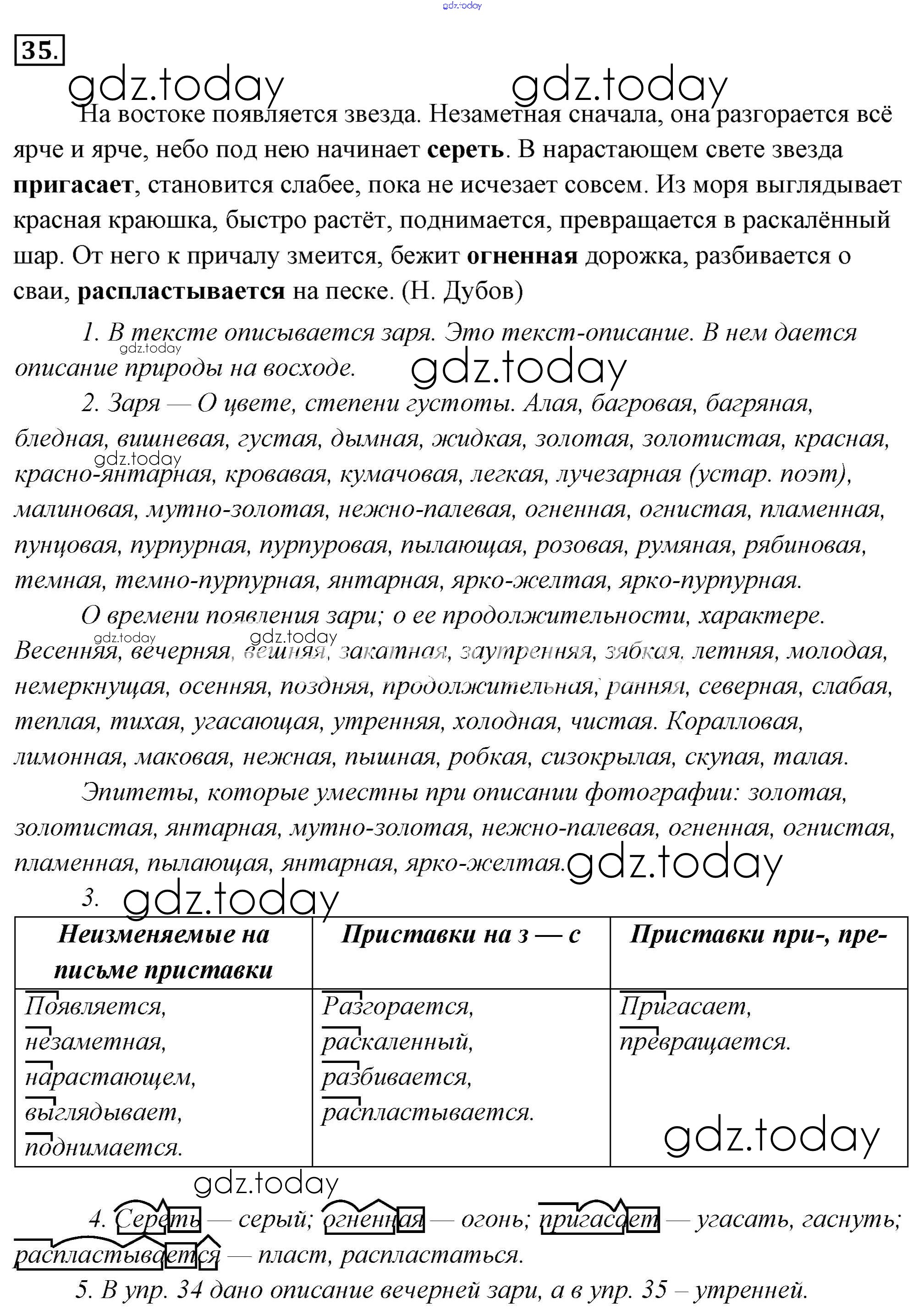 Ответы к Решение к упражнениям 35 Учебнику по Русскому языку для 6 класса Львова, Львов Мнемозина 2013