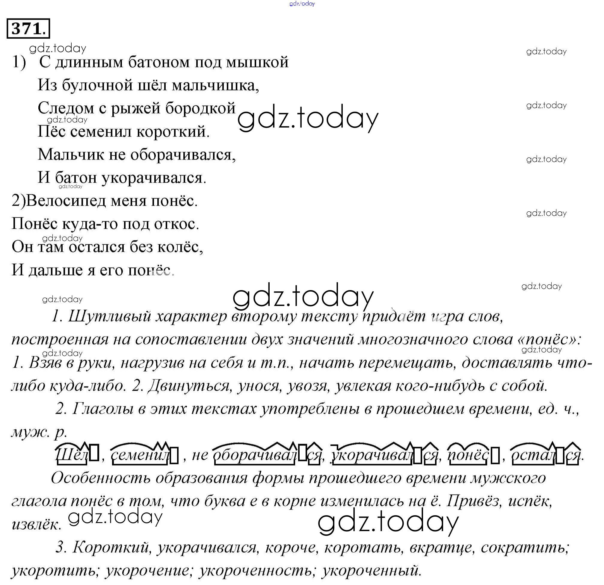На страницах сайта gdz.today вы найдете учебный и вспомогательный материал, направленный на улучшения знаний школьной программы. ГДЗ - онлайн мир знаний Решение к упражнениям 371 Учебнику по Русскому языку для 6 класса Львова, Львов Мнемозина 2013