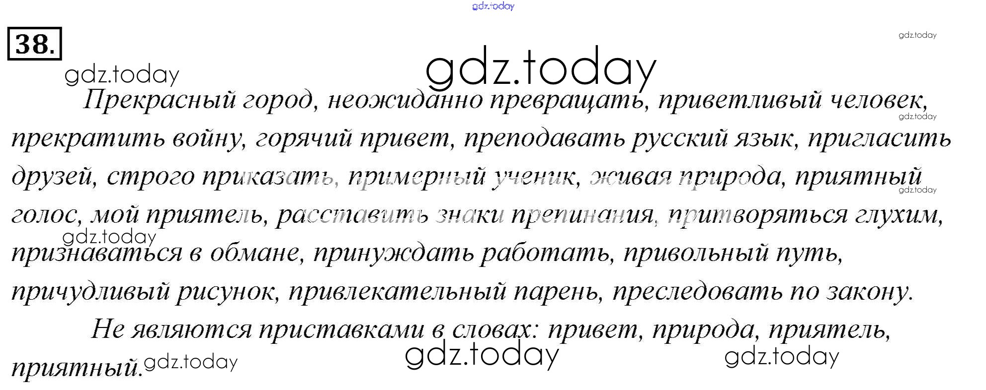 На страницах сайта gdz.today вы найдете учебный и вспомогательный материал, направленный на улучшения знаний школьной программы. ГДЗ - онлайн мир знаний Решение к упражнениям 38 Учебнику по Русскому языку для 6 класса Львова, Львов Мнемозина 2013
