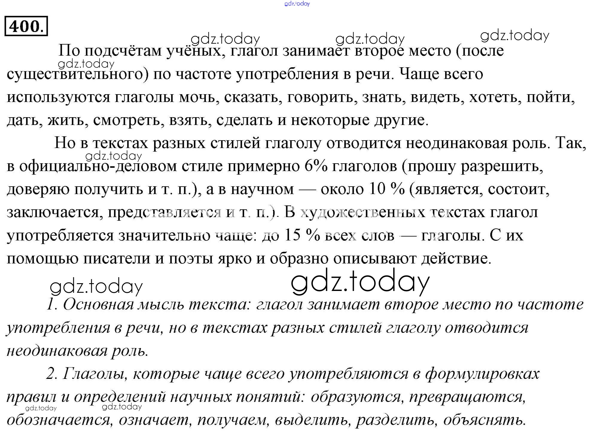 На страницах сайта gdz.today вы найдете учебный и вспомогательный материал, направленный на улучшения знаний школьной программы. ГДЗ - онлайн мир знаний Решение к упражнениям 400 Учебнику по Русскому языку для 6 класса Львова, Львов Мнемозина 2013