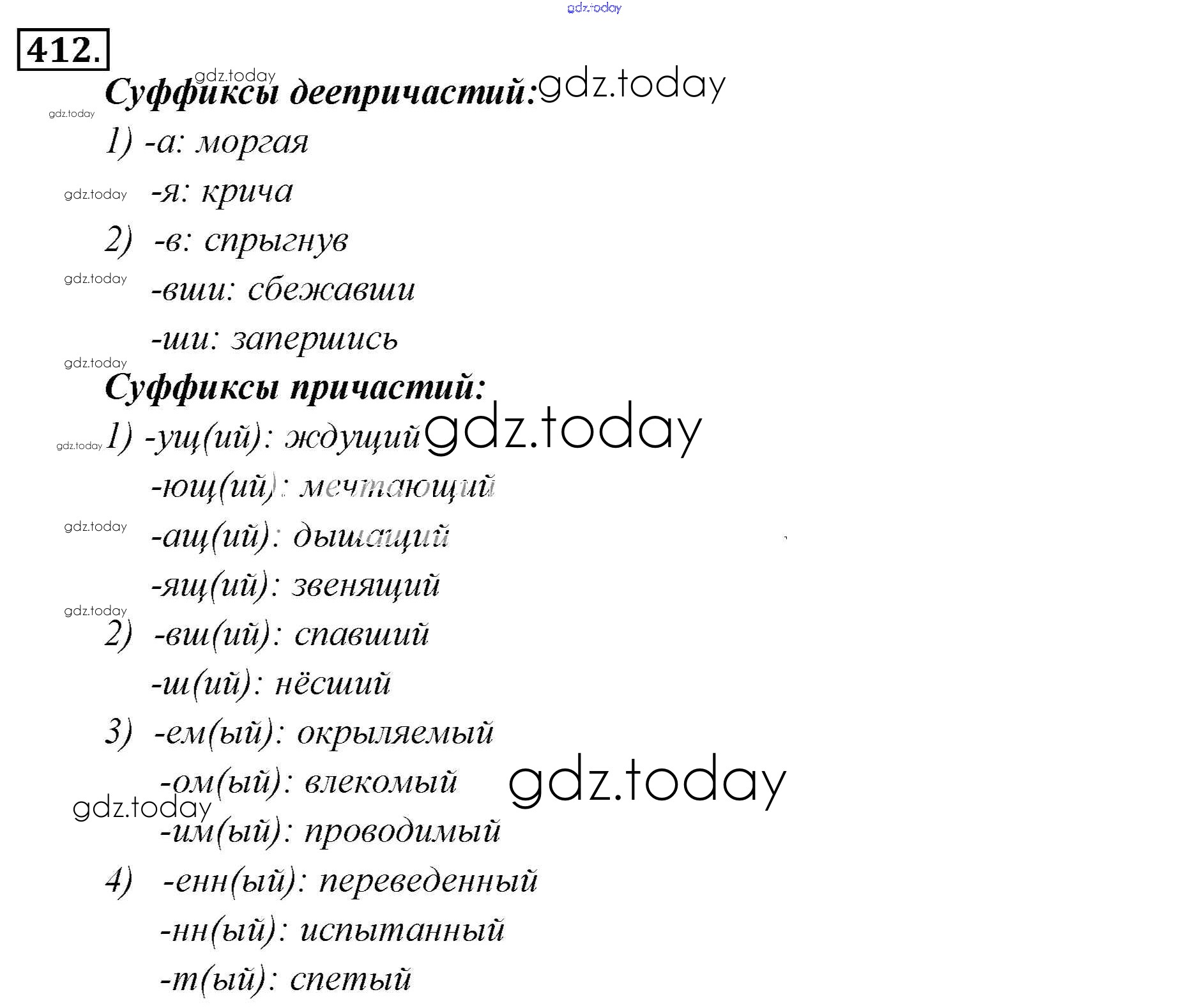 На страницах сайта gdz.today вы найдете учебный и вспомогательный материал, направленный на улучшения знаний школьной программы. ГДЗ - онлайн мир знаний Решение к упражнениям 412 Учебнику по Русскому языку для 6 класса Львова, Львов Мнемозина 2013