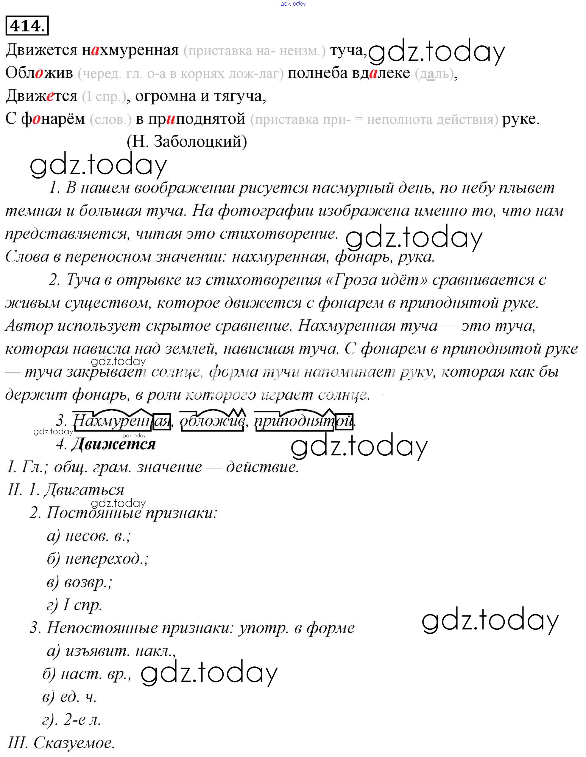 На страницах сайта gdz.today вы найдете учебный и вспомогательный материал, направленный на улучшения знаний школьной программы. ГДЗ - онлайн мир знаний Решение к упражнениям 414 Учебнику по Русскому языку для 6 класса Львова, Львов Мнемозина 2013