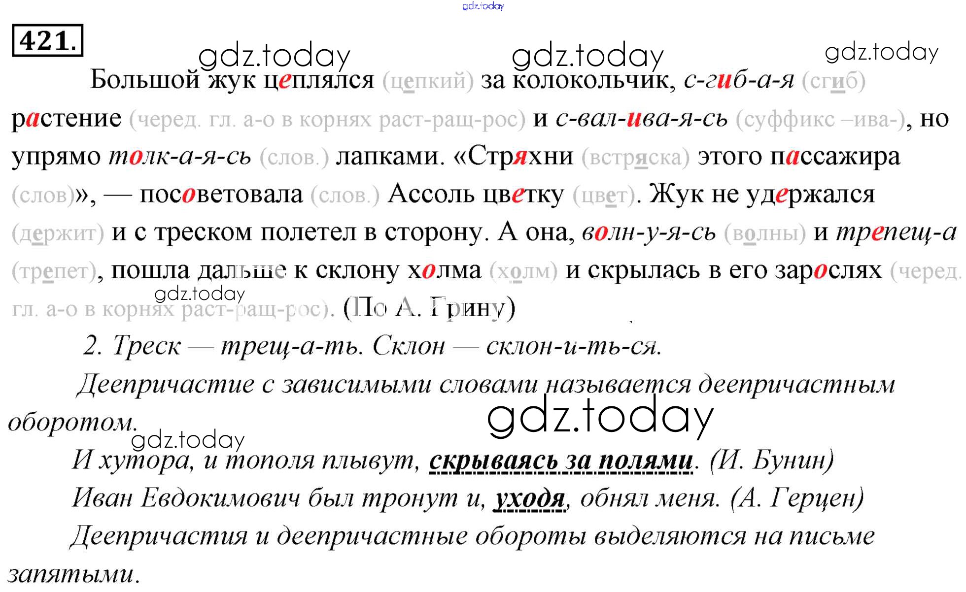 На страницах сайта gdz.today вы найдете учебный и вспомогательный материал, направленный на улучшения знаний школьной программы. ГДЗ - онлайн мир знаний Решение к упражнениям 421 Учебнику по Русскому языку для 6 класса Львова, Львов Мнемозина 2013