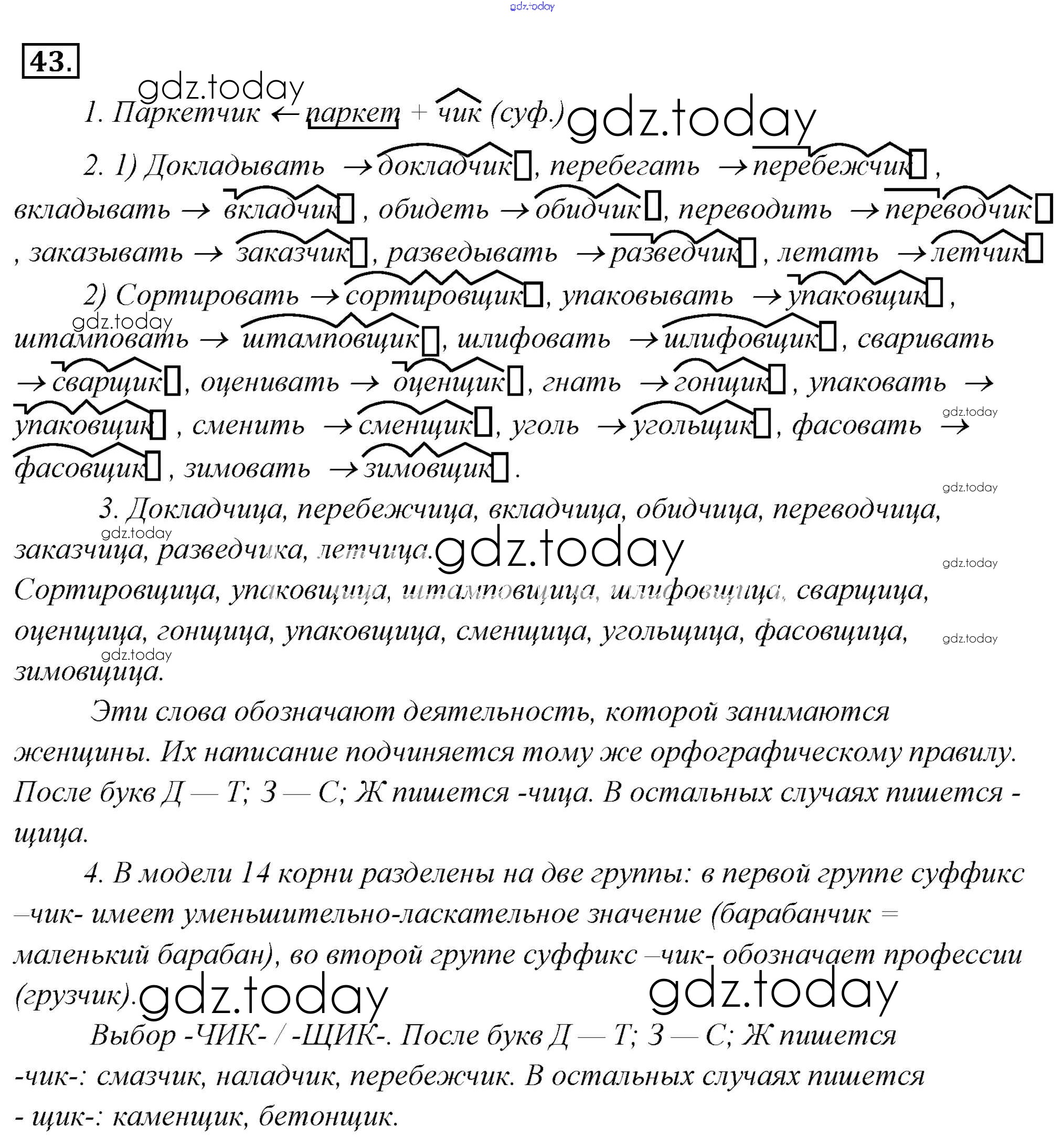 Ответы к Решение к упражнениям 43 Учебнику по Русскому языку для 6 класса Львова, Львов Мнемозина 2013