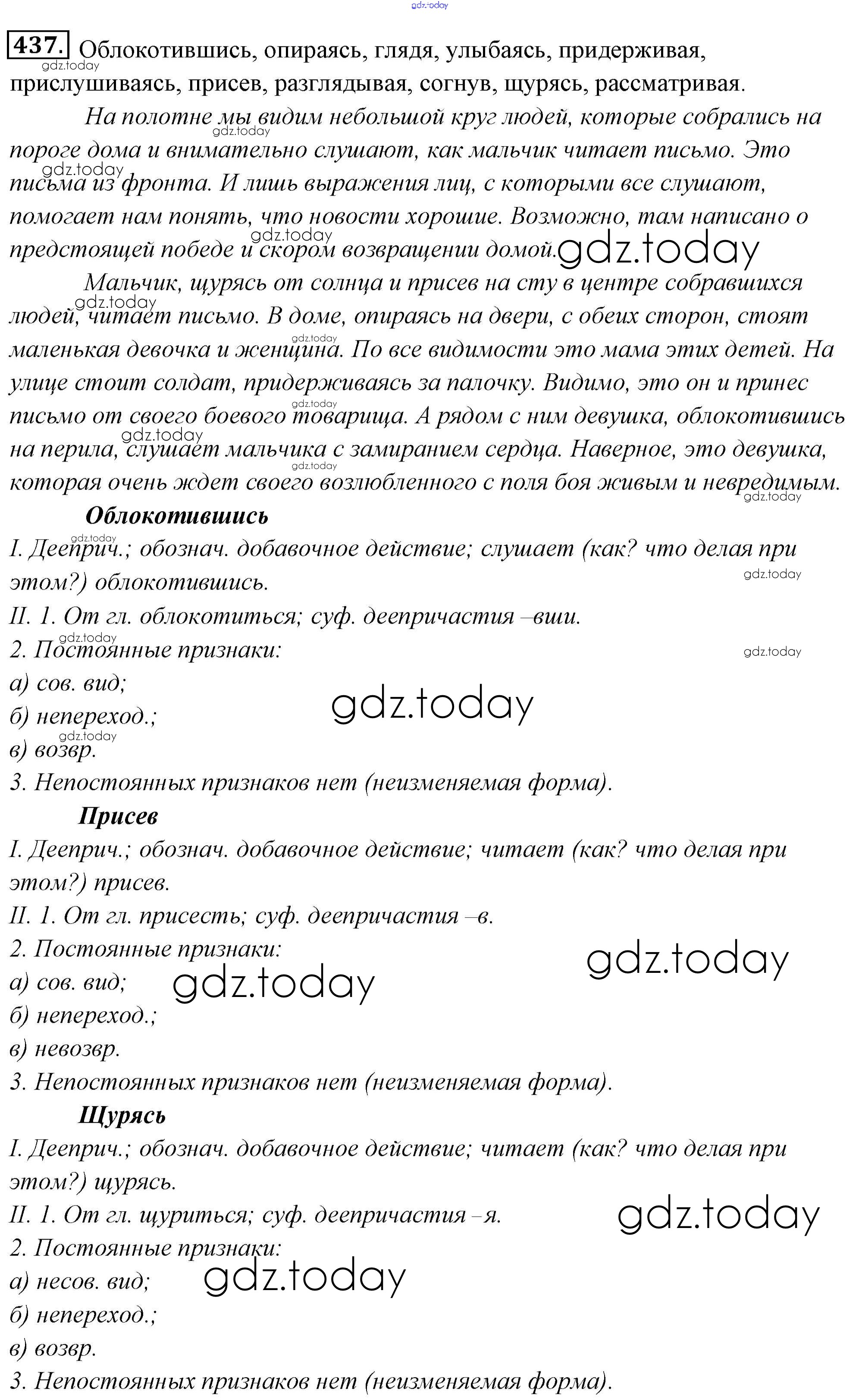 На страницах сайта gdz.today вы найдете учебный и вспомогательный материал, направленный на улучшения знаний школьной программы. ГДЗ - онлайн мир знаний Решение к упражнениям 437 Учебнику по Русскому языку для 6 класса Львова, Львов Мнемозина 2013