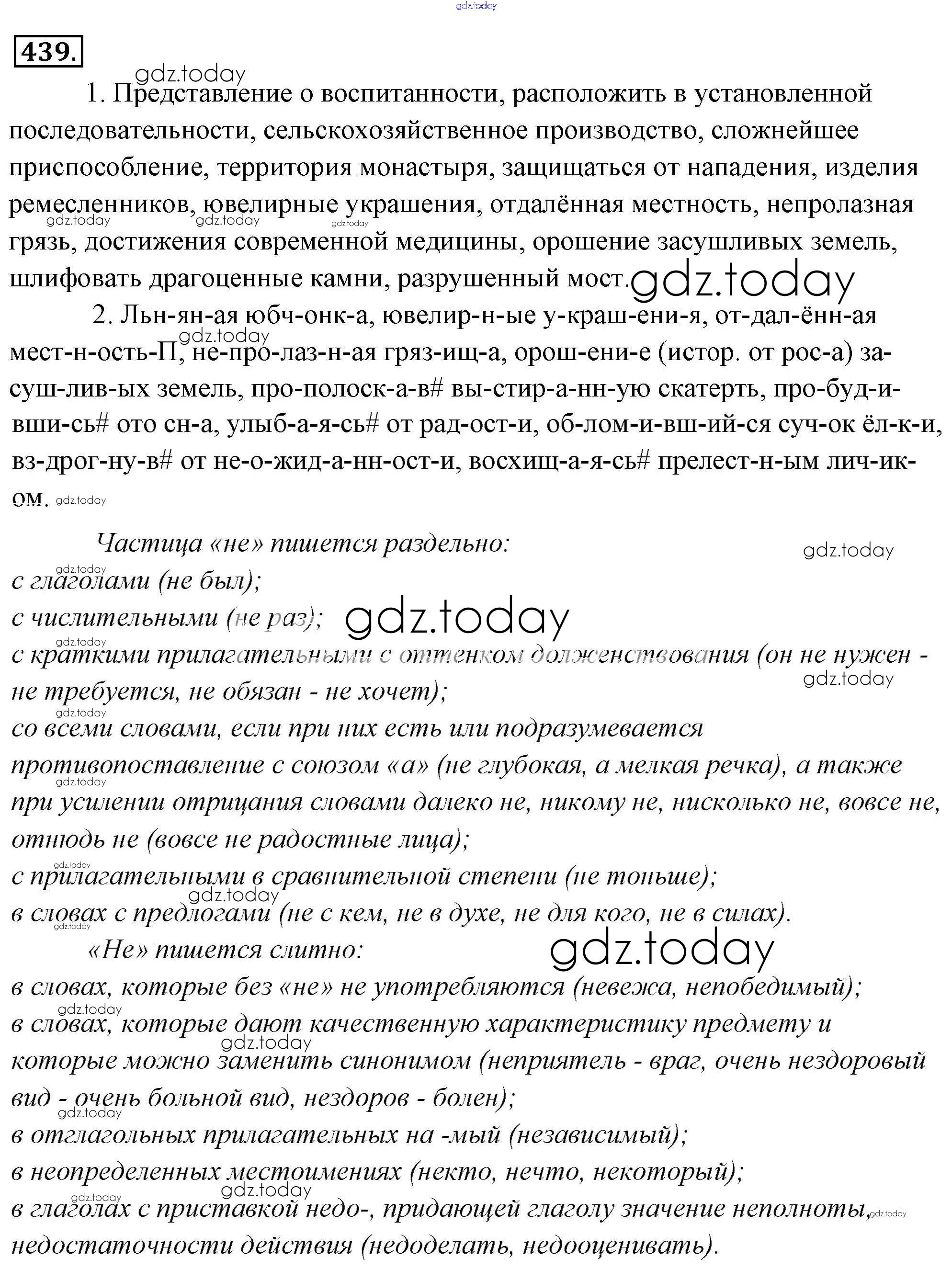 На страницах сайта gdz.today вы найдете учебный и вспомогательный материал, направленный на улучшения знаний школьной программы. ГДЗ - онлайн мир знаний Решение к упражнениям 439 Учебнику по Русскому языку для 6 класса Львова, Львов Мнемозина 2013