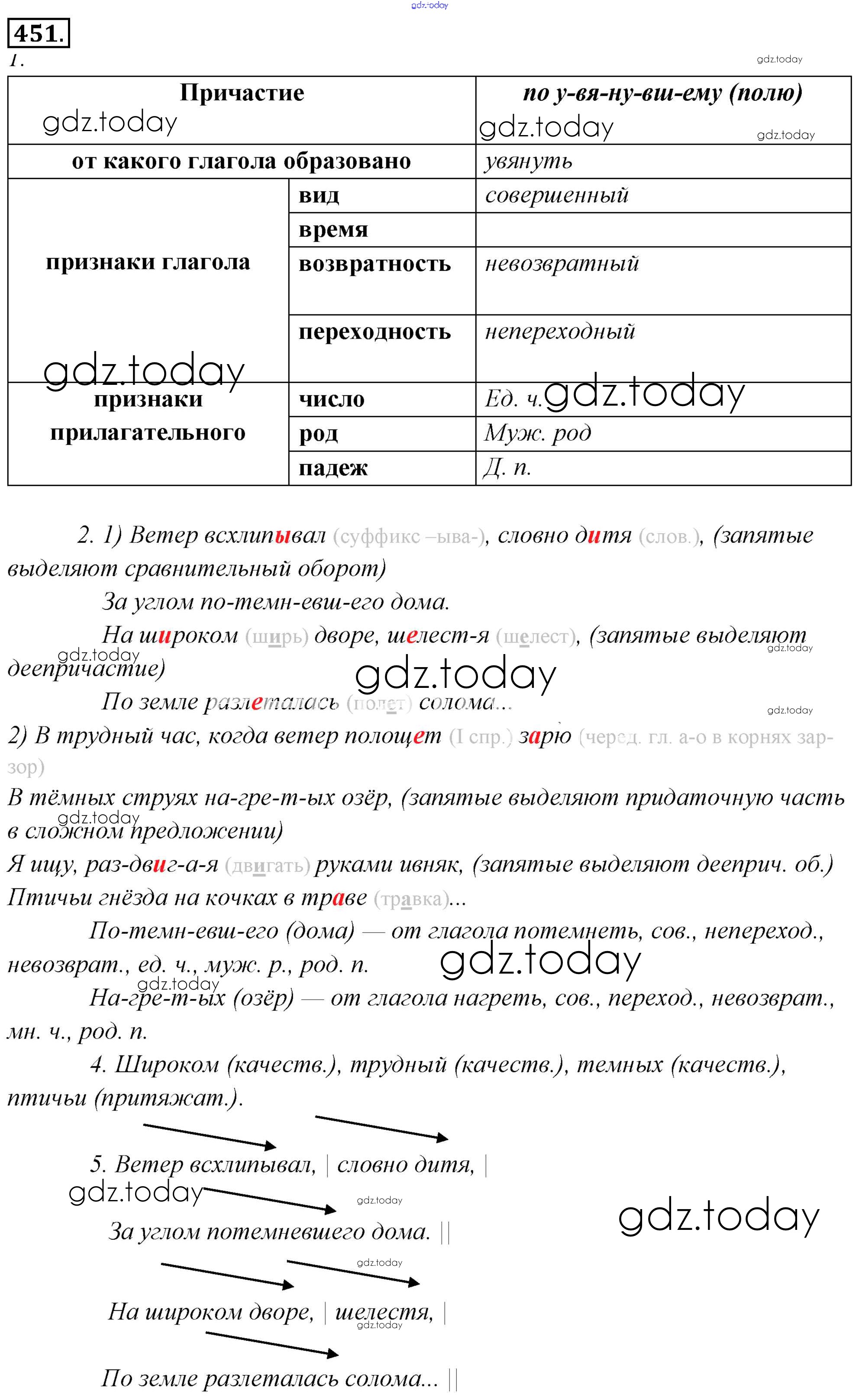 На страницах сайта gdz.today вы найдете учебный и вспомогательный материал, направленный на улучшения знаний школьной программы. ГДЗ - онлайн мир знаний Решение к упражнениям 451 Учебнику по Русскому языку для 6 класса Львова, Львов Мнемозина 2013