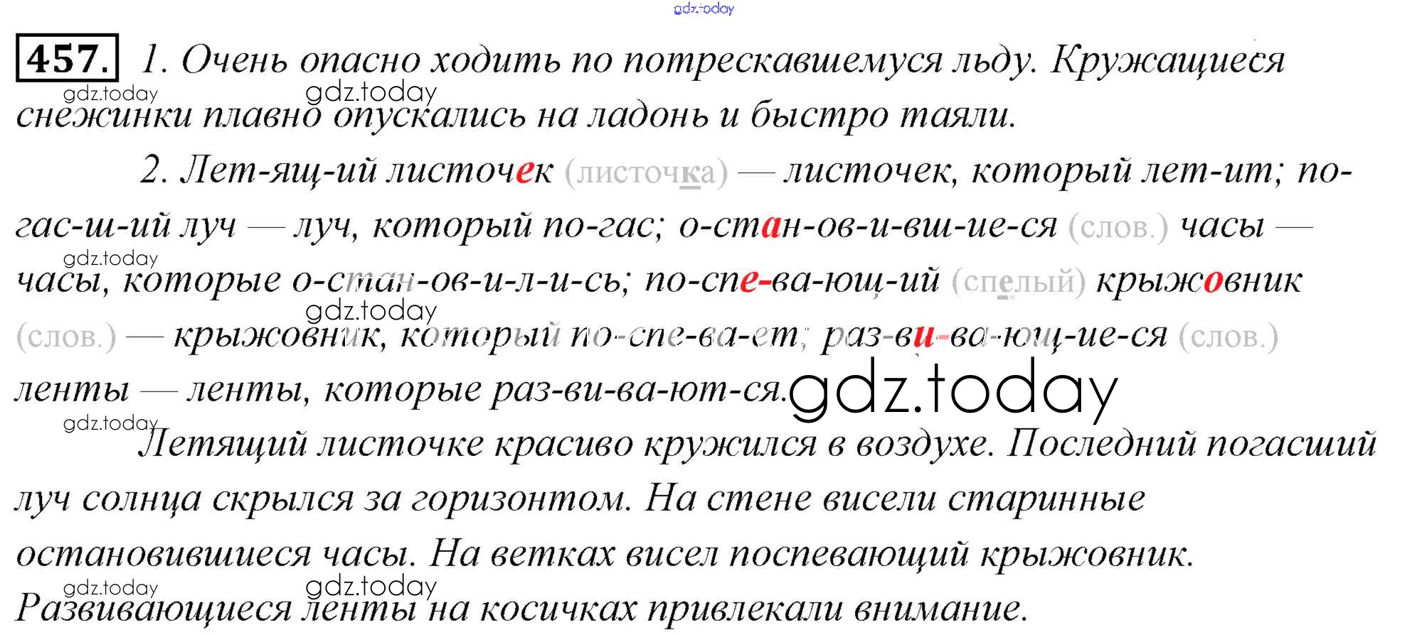 На страницах сайта gdz.today вы найдете учебный и вспомогательный материал, направленный на улучшения знаний школьной программы. ГДЗ - онлайн мир знаний Решение к упражнениям 457 Учебнику по Русскому языку для 6 класса Львова, Львов Мнемозина 2013