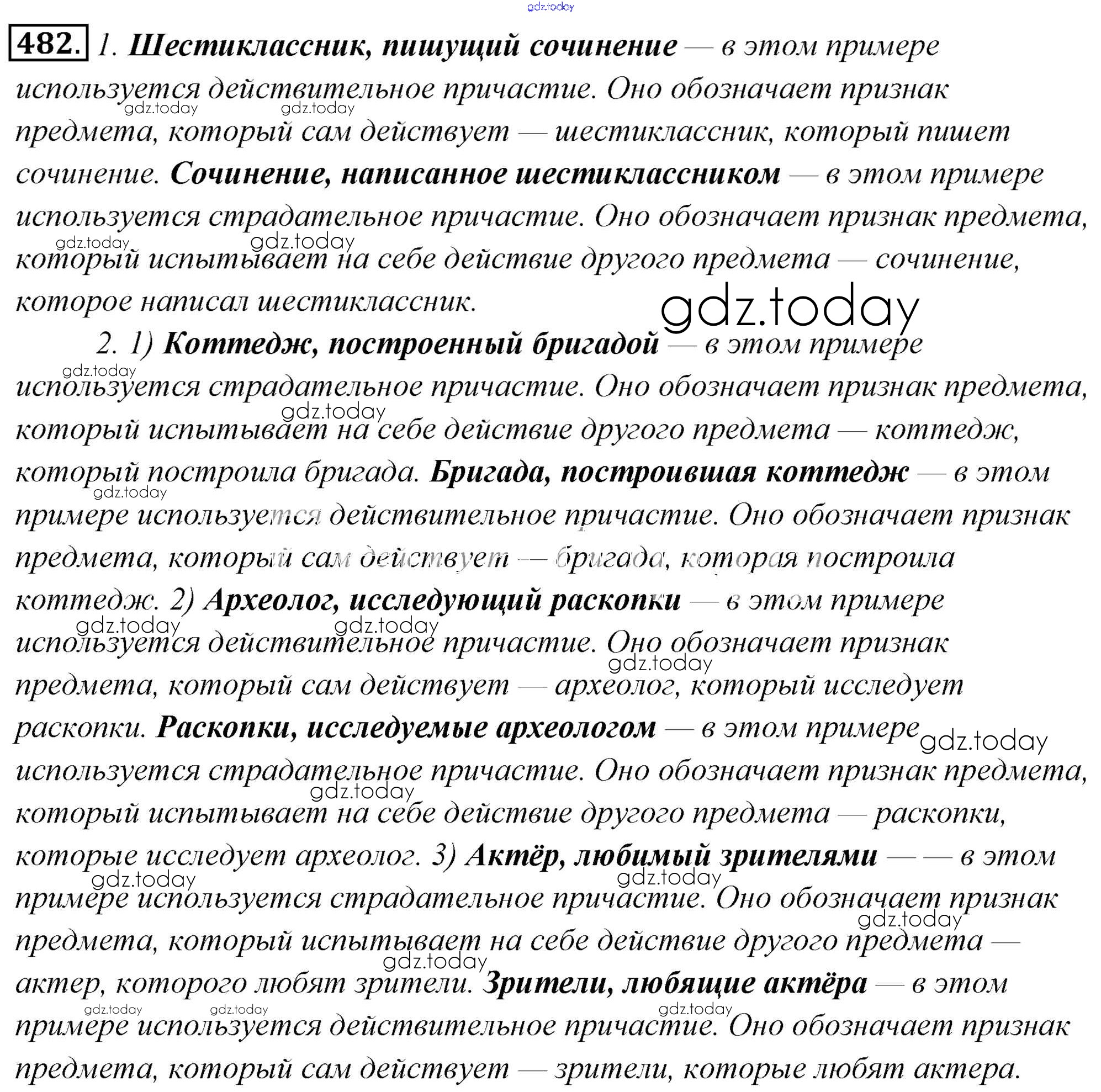 На страницах сайта gdz.today вы найдете учебный и вспомогательный материал, направленный на улучшения знаний школьной программы. ГДЗ - онлайн мир знаний Решение к упражнениям 482 Учебнику по Русскому языку для 6 класса Львова, Львов Мнемозина 2013