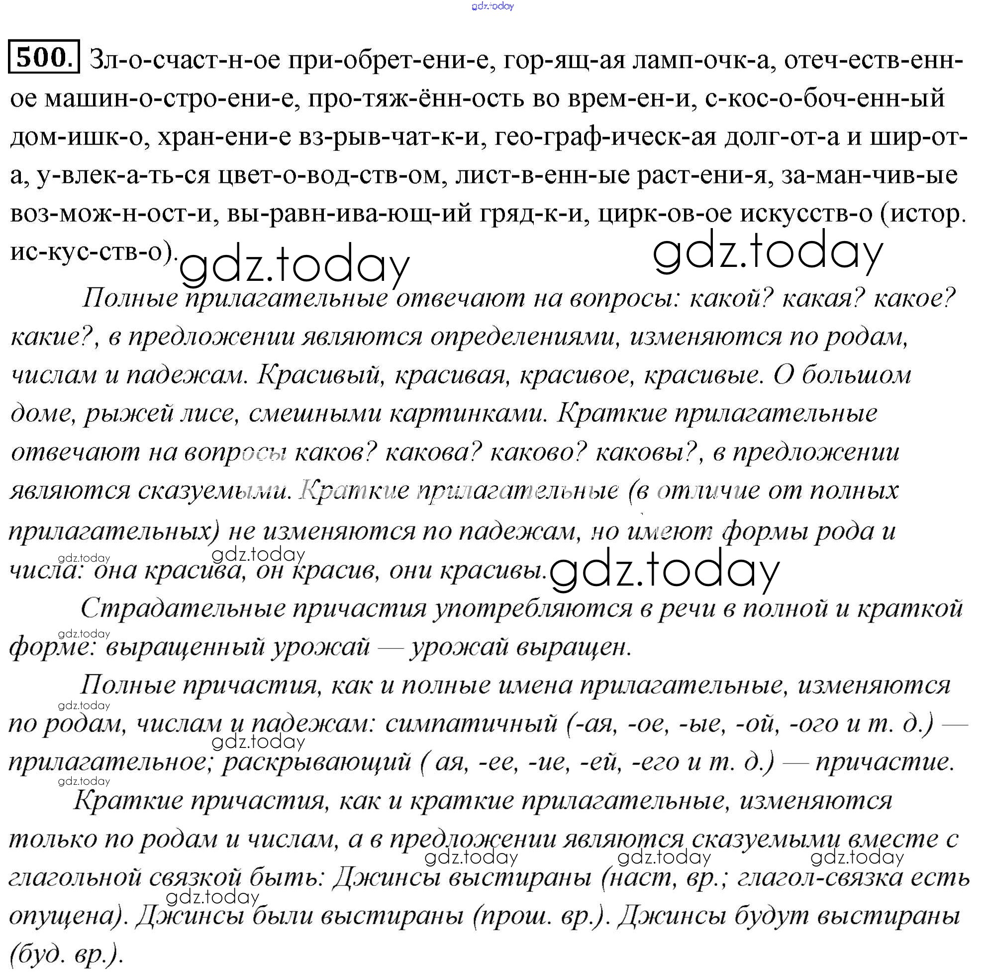 Ответы к Решение к упражнениям 500 Учебнику по Русскому языку для 6 класса Львова, Львов Мнемозина 2013