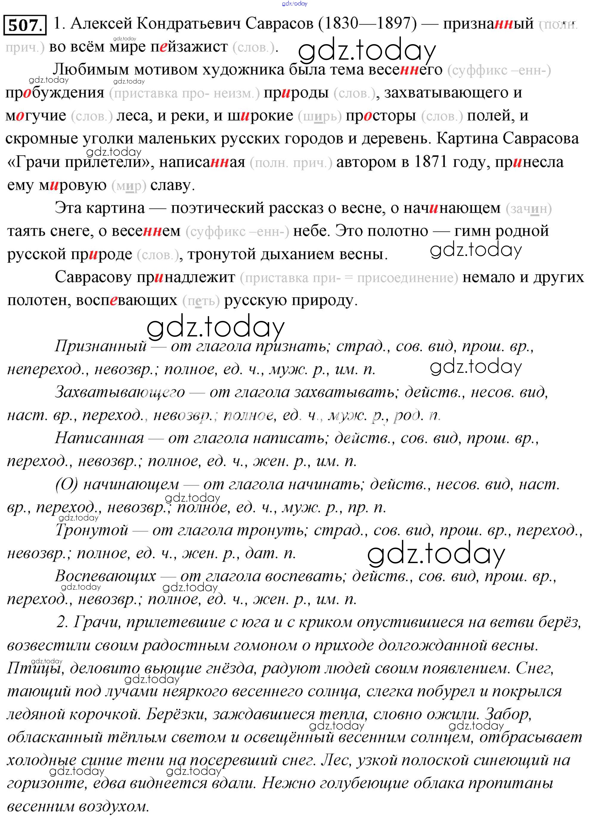 На страницах сайта gdz.today вы найдете учебный и вспомогательный материал, направленный на улучшения знаний школьной программы. ГДЗ - онлайн мир знаний Решение к упражнениям 507 Учебнику по Русскому языку для 6 класса Львова, Львов Мнемозина 2013