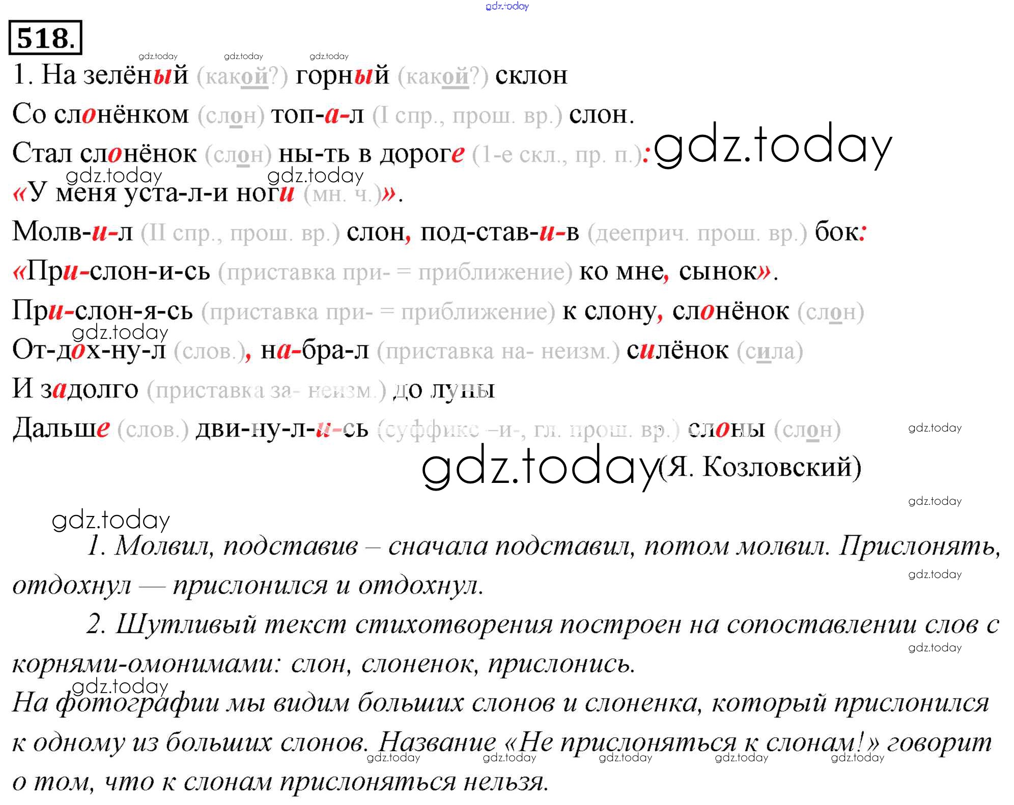 На страницах сайта gdz.today вы найдете учебный и вспомогательный материал, направленный на улучшения знаний школьной программы. ГДЗ - онлайн мир знаний Решение к упражнениям 518 Учебнику по Русскому языку для 6 класса Львова, Львов Мнемозина 2013
