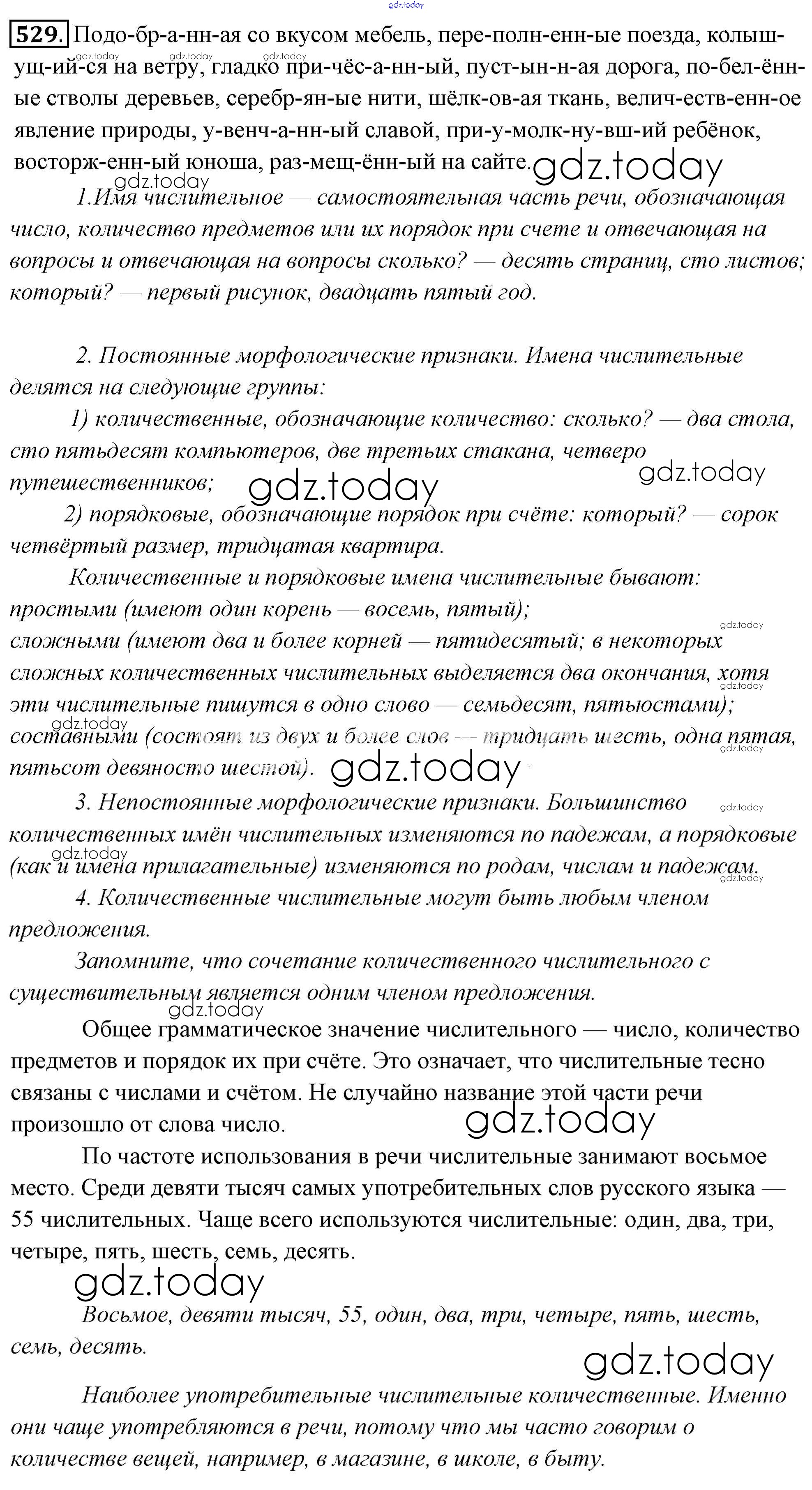 На страницах сайта gdz.today вы найдете учебный и вспомогательный материал, направленный на улучшения знаний школьной программы. ГДЗ - онлайн мир знаний Решение к упражнениям 529 Учебнику по Русскому языку для 6 класса Львова, Львов Мнемозина 2013